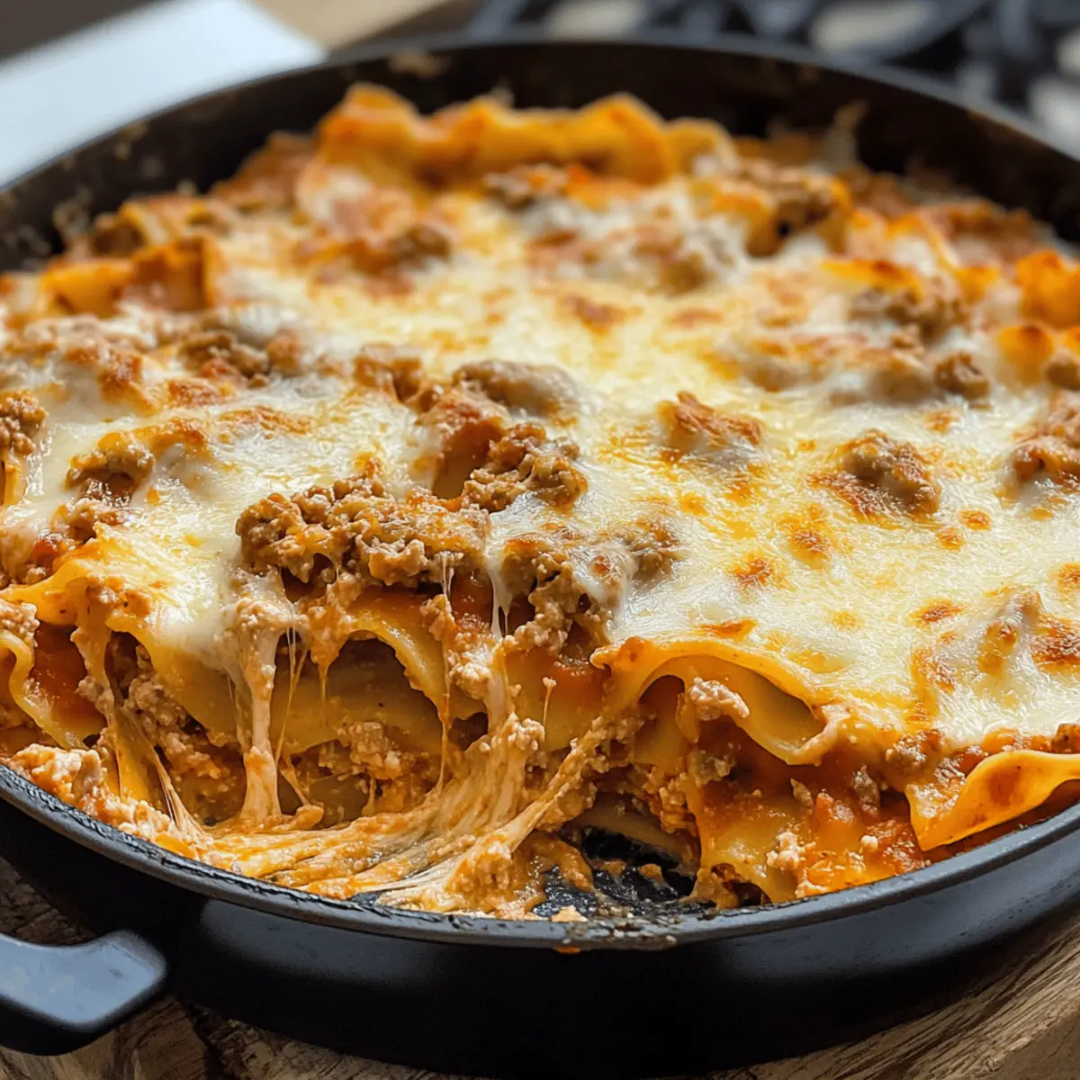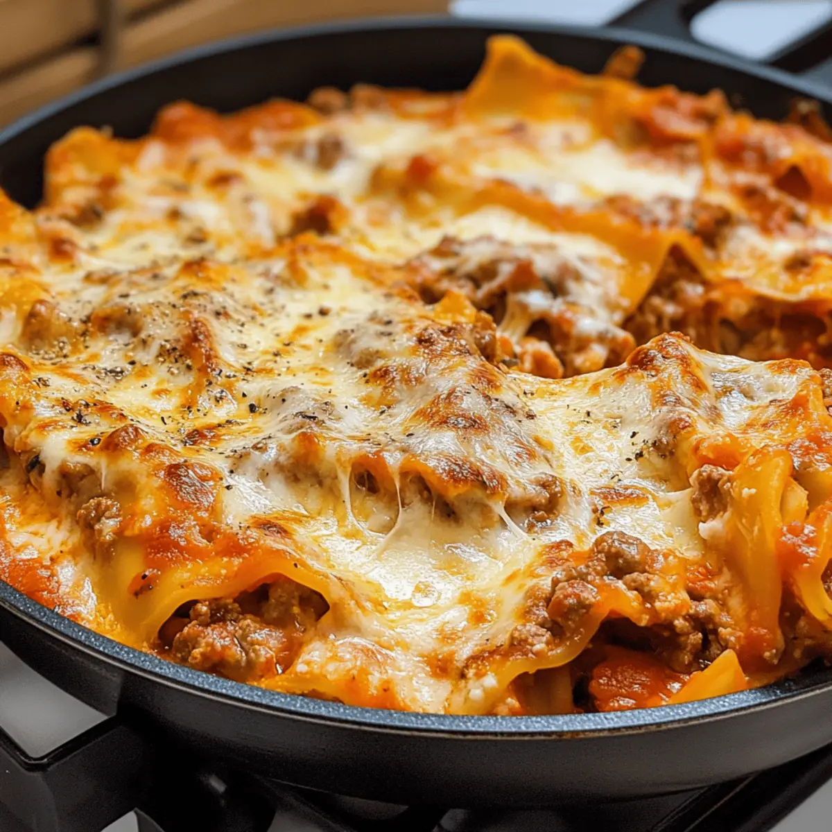 Diese Pfannen-Lasagne ist ein schnelles und schmackhaftes Familiengericht mit Rinderhackfleisch, Tomatensauce und einer cremigen Käseschicht. Perfekt für geschäftige Tage!