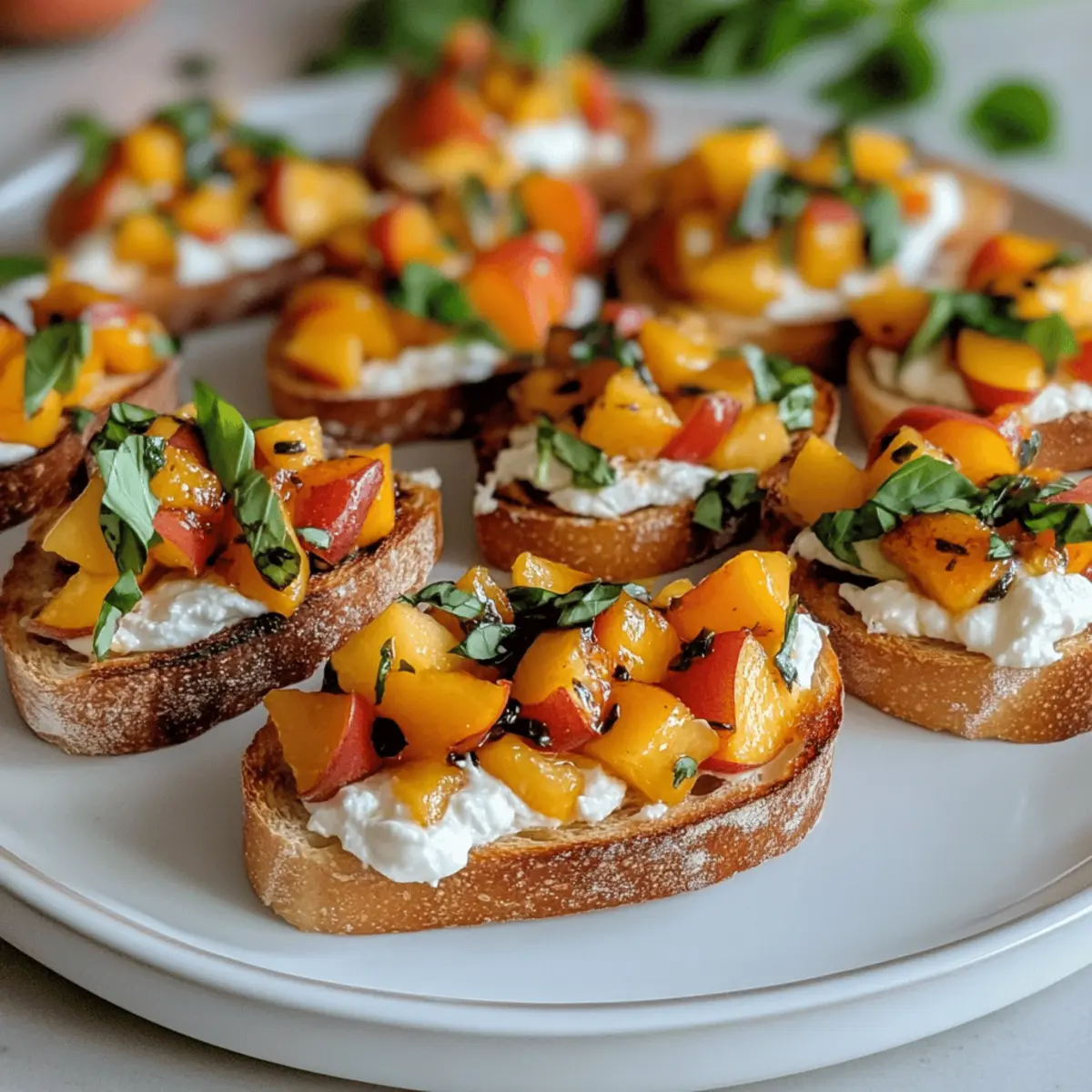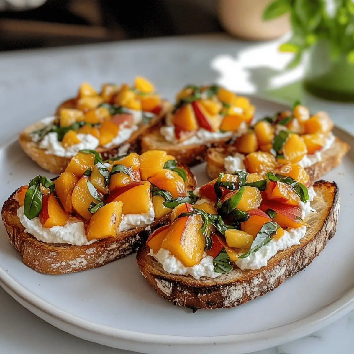 Hinweis: Diese Pfirsich Bruschetta mit geschlagenem Ricotta ist ein Geschmackserlebnis, das frische Zutaten zum Strahlen bringt!