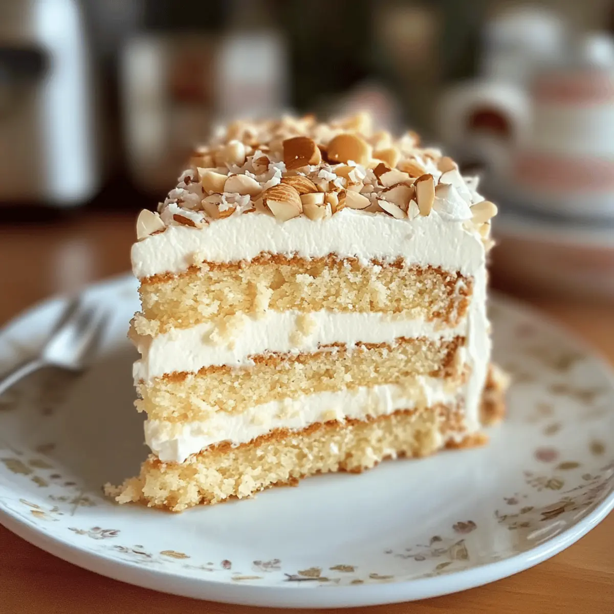 Raffaello-Kuchen mit Kokoscreme und Mandeln
