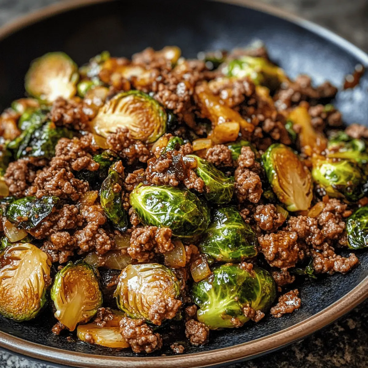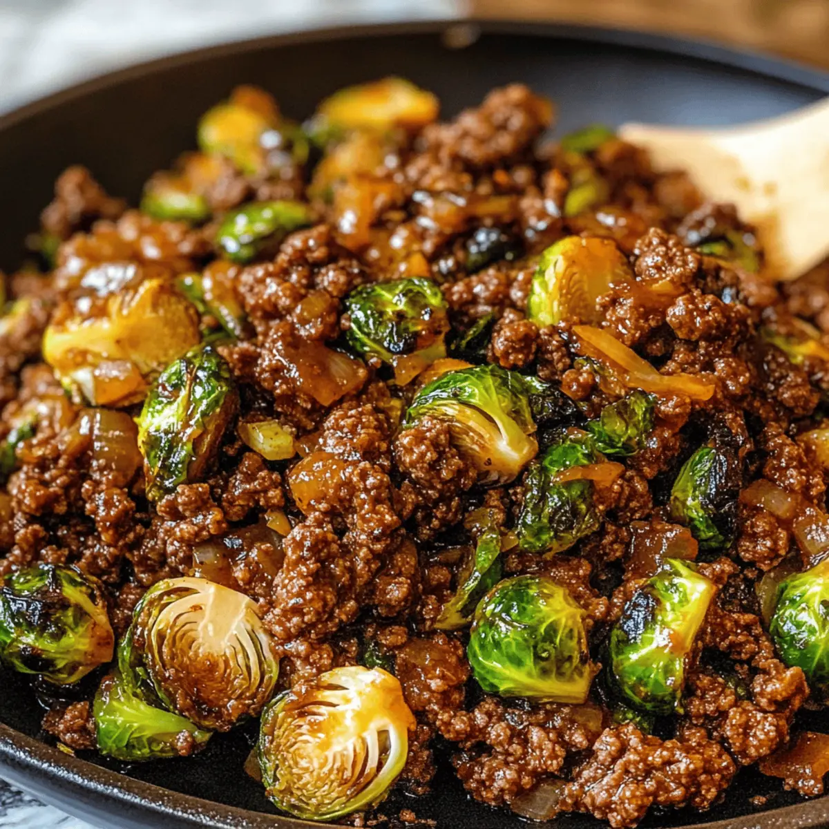 Als ich neulich in meiner Küche stand, wusste ich, dass ich etwas Besonderes zaubern wollte. Diese 30-Minuten-Rinderhackfleisch und Rosenkohl mit süß-scharfer Chili-Sauce sind nicht nur unglaublich leicht zuzubereiten, sondern bieten auch eine köstliche Mischung aus süßen und herzhaften Aromen, die einfach begeistert. Perfekt für geschäftige Wochentage oder als Meal-Prep-Option, lassen sich die Zutaten schnell zusammenstellen, und in kurzer Zeit genießt die ganze Familie ein gesundes und befriedigendes Abendessen. Mit seiner Vielfalt an Texturen und einem Hauch von asiatischem Flair verwandelt dieses Gericht jede Mahlzeit in ein kleines Fest. Bereit, mir dein eigenes Meisterwerk zu kreieren? Warum wirst du dieses Rezept lieben? Einfachheit: Mit nur 30 Minuten Zubereitungszeit zauberst du ein köstliches Gericht, das selbst für Kochanfänger leicht gelingt. Vielseitigkeit: Du kannst das Rinderhackfleisch problemlos durch Hähnchen oder Tofu ersetzen und verschiedene Gemüse wie Paprika hinzufügen – das macht jede Zubereitung einzigartig. Intensive Aromen: Die Kombination aus süß-scharfer Chili-Sauce und karamellisierten Rosenkohl sorgt für ein Geschmackserlebnis, das alle begeistert. Gesunde Wahl: Mit magerem Rinderhack und frischem Gemüse erhältst du eine ausgewogene Mahlzeit, die nährstoffreich und sättigend ist. Perfekt für die ganze Familie: Jeder wird begeistert sein, egal ob beim Abendessen oder als Meal-Prep für die Woche. Schau dir auch Tostadas Vom Blech oder Karamellisierte Rosenkohlsteaks Mit an für weitere hibbelige Optionen! Rinderhackfleisch und Rosenkohl Zutaten Für das Rinderhackfleisch Mageres Rinderhackfleisch – dient als Hauptproteinquelle; kann durch Hähnchen oder Pute ersetzt werden. Knoblauchpulver – verstärkt den herzhaften Geschmack; frischer Knoblauch kann ebenfalls verwendet werden. Kosches Salz und schwarzer Pfeffer – verbessern den allgemeinen Geschmack; nach Belieben anpassen. Frühlingszwiebeln – sorgen für ein mildes Zwiebelaroma; können durch gelbe Zwiebeln ersetzt werden. Sojasauce (low sodium) – fügt Umami hinzu; Tamari für die glutenfreie Variante verwenden. Sriracha (optional) – sorgt für eine scharfe Note; nach persönlicher Vorliebe dosieren. Für die Rosenkohl-Zubereitung Avocadoöl – ideal zum Anbraten und liefert gesunde Fette; kann durch Olivenöl ersetzt werden. Geriebene Rosenkohl – Hauptgemüse, das Textur bietet; ganze Rosenkohl können halbiert werden. Für die Sauce Süß-Chili-Sauce – das Hauptaroma für Süße und leichte Schärfe; je nach Vorliebe anpassen. Frischer Limettensaft – bringt Frische und hebt die Aromen hervor; unbedingt vor dem Servieren hinzufügen. Sesamkörner (optional) – dienen zur Garnierung und verleihen zusätzlichen Crunch. Dieses Rezept für Rinderhackfleisch und Rosenkohl ist nicht nur einfach, sondern auch voll von Geschmack und Nährstoffen. Mach dich bereit, deine Familie mit einem fantastischen Gericht zu beeindrucken! Schritt-für-Schritt-Anleitung für Schnelles Rinderhackfleisch und Rosenkohl Step 1: Rinderhackfleisch anbraten Erhitze eine große Pfanne bei mittlerer Hitze und bröckle das mageren Rinderhackfleisch hinein. Füge die geschnittenen Frühlingszwiebeln, Knoblauchpulver, Koscheres Salz, schwarzen Pfeffer und optional Sriracha hinzu. Koche alles für etwa 5-7 Minuten, bis das Fleisch schön gebräunt ist und gleichmäßig durchgegart aussieht. Nimm das Rinderhackfleisch anschließend aus der Pfanne und stelle es beiseite. Step 2: Rosenkohl sautieren Gib das Avocadoöl in dieselbe Pfanne und erhitze es. Füge die geriebenen Rosenkohl hinzu, würze alles mit Salz und Pfeffer und brate die Mischung für etwa 5-7 Minuten an. Rühre gelegentlich um, sodass die Rosenkohl weich werden und leicht karamellisieren. Achte darauf, dass sie eine schöne goldene Farbe annehmen, um den besten Geschmack zu gewährleisten. Step 3: Zutaten vereinen Setze das gebratene Rinderhackfleisch wieder in die Pfanne zu den Rosenkohl. Gieße die süß-scharfe Chili-Sauce und den frischen Limettensaft darüber. Rühre alles gut um, sodass die Sauce gleichmäßig verteilt ist und alle Zutaten gut vermischt werden. Erwärme die Mischung für weitere 2-3 Minuten und lasse alles gut durchziehen. Step 4: Servieren und garnieren Sobald alles heiß und gut vermischt ist, serviere das Gericht sofort. Du kannst es nach Belieben mit Sesamkörnern garnieren, die für zusätzlichen Crunch sorgen. Genieße dein schnelles Rinderhackfleisch und Rosenkohl Abenteuer! Expert Tips für Rinderhackfleisch und Rosenkohl Richtige Hitze: Achte darauf, die Pfanne auf mittlerer Hitze zu halten. Zu hohe Temperaturen können das Rinderhackfleisch austrocknen und die Rosenkohl anbrennen. Zum richtigen Zeitpunkt würzen: Würze das Gemüse erst, nachdem es in die Pfanne kam. Dadurch bleibt der natürliche Geschmack der Rosenkohl erhalten und das Rinderhackfleisch wird gleichmäßig gewürzt. Variationsmöglichkeiten: Probiere, die Hälfte des Rinderhackfleischs durch Tofu zu ersetzen, um ein noch abwechslungsreicheres Gericht zu kreieren. So wird dein Rinderhackfleisch und Rosenkohl noch flexibler. Karamellisierung der Rosenkohl: Für die beste Textur und den köstlichsten Geschmack, lasse die Rosenkohl nicht zu lange anbraten. Halte sie bissfest, um das Crunchgefühl zu bewahren. Hitze anpassen: Justiere die Menge an Sriracha je nach Vorliebe für Würze. Ein kleiner Tropfen kann viel bewirken, also taste dich langsam an die gewünschte Schärfe heran. Variationen & Substitutionen für Rinderhackfleisch und Rosenkohl Entdecke, wie du dieses Rezept nach deinem Geschmack anpassen kannst! Dairy-Free: Verwende glutenfreie Tamari statt herkömmlicher Sojasauce, um sicherzugehen, dass es für alle geeignet ist. Vegan: Ersetze das Rinderhackfleisch durch Tofu oder Seitan für eine pflanzliche Variante, die genauso herzhaft ist. Extra Gemüse: Füge geschnittene Paprika, Karotten oder Zucchini hinzu, um mehr Fa