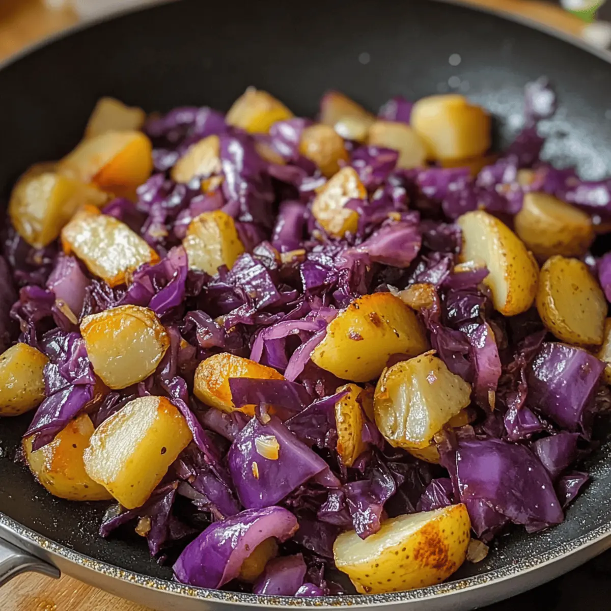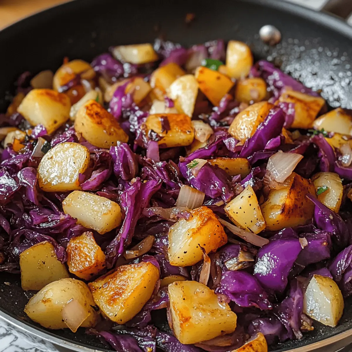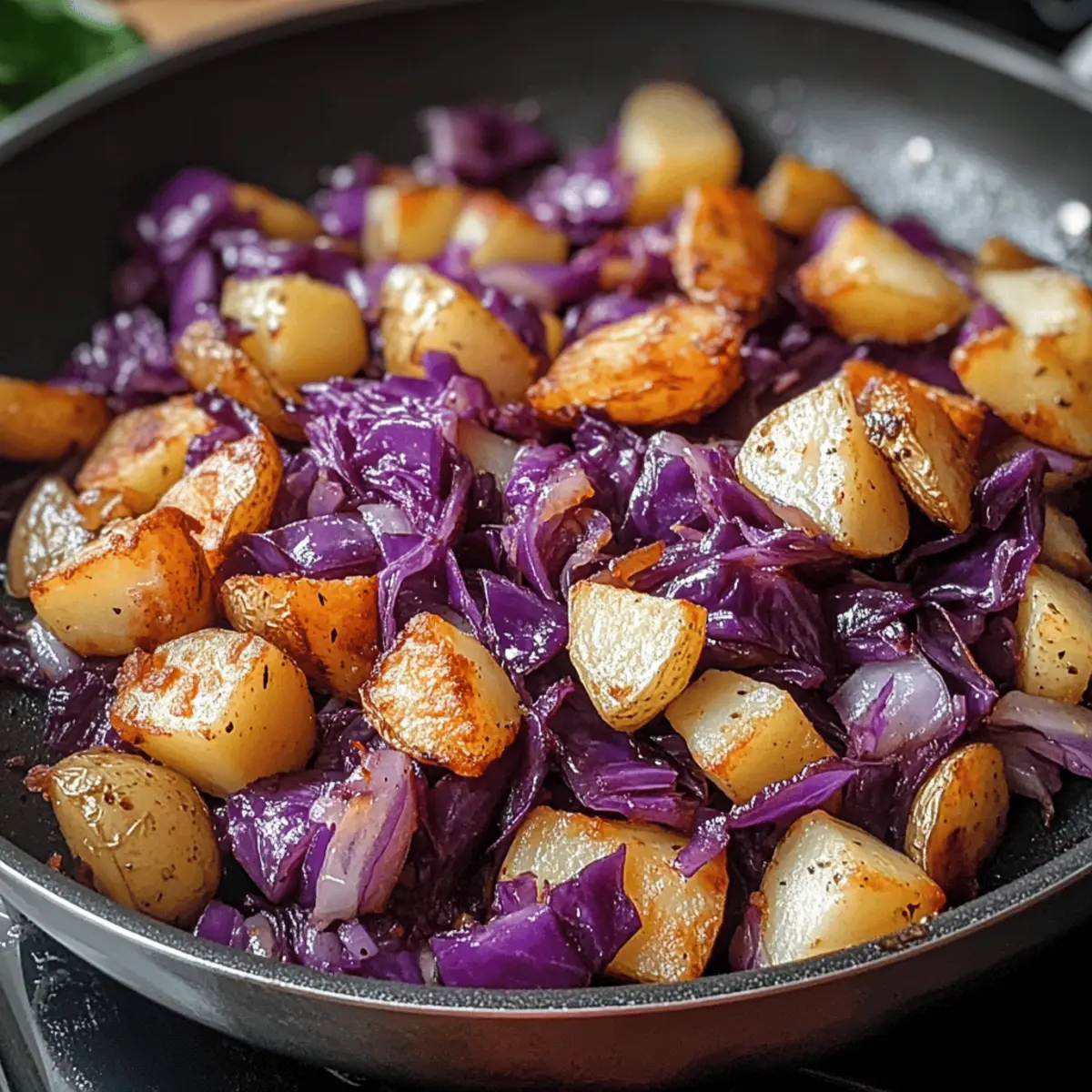 Die kühle Luft hat mich kürzlich dazu inspiriert, in meiner Küche ein herzhaftes Gericht zu kreieren, das Erinnerungen an gemütliche Winterabende weckt. Die Rotkohl Pfanne mit Kartoffeln vereint zarte Rotkohlblätter mit knusprigen, goldbraun gebratenen Kartoffeln zu einem wärmenden Festmahl. Mit einem zauberhaften Gleichgewicht aus süß und sauer, unterstrichen von einem Spritzer Apfelessig, wird dieses Rezept schnell zu einem meiner Lieblingsgerichte – ideal für alle, die sich eine schnelle und nährstoffreiche Mahlzeit wünschen. Es lässt sich wunderbar als vegetarisches Hauptgericht oder als herzhafter Beilagenstar servieren. Neugierig, wie einfach es ist, den Abwechslung in dein Essensrepertoire zu bringen? Lass uns loslegen! Warum wirst du dieses Rezept lieben? Einfachheit ganz großgeschrieben: Die Zubereitung ist unkompliziert und benötigt nur grundlegende Kochkünste. Herzhafter Geschmack: Die Kombi aus Rotkohl und Kartoffeln bietet einen wunderbaren, knusprigen Biss und eine süß-saure Note. Vielseitig einsetzbar: Ob als Stand-alone-Gericht mit Brot oder als köstliche Beilage zu Fleisch, die Rotkohl Pfanne trifft immer den Geschmack der Gäste. Zeitersparnis garantiert: In weniger als 30 Minuten hast du ein nahrhaftes Gericht auf dem Tisch. Gesundheitlich wertvoll: Reich an Vitaminen und Ballaststoffen, ist dieses Rezept nicht nur lecker, sondern auch gut für dich – perfekt für eine gesunde Ernährung! Variation macht Spaß: Experimentiere mit Gewürzen oder zusätzlichen Zutaten für immer neue Genussmomente – vielleicht einen Schuss Chili für eine pikante Note? Rotkohl Pfanne mit Kartoffeln Zutaten • Entdecke die köstlichen Zutaten für dieses einfache, aber geschmackvolle Gericht. Für den Hauptbestandteil Rotkohl – bringt einen süß-sauren Geschmack und ist reich an Vitaminen; kann durch grünen Kohl ersetzt werden für eine mildere Note. Kartoffeln – sorgen für ein erdiges Aroma und eine goldbraune, knusprige Textur bei der Zubereitung; Süßkartoffeln sind eine süßere Alternative. Für das Dressing Apfelessig – fügt Säure hinzu und verstärkt die Aromen; Zitronensaft ist eine gute Alternative. Kreuzkümmel – sorgt für eine angenehme Tiefe; kann durch Koriander ersetzt werden, wenn du einen anderen Geschmack bevorzugst. Für das Anbraten Öl – perfekt zum Sautieren; Olivenöl oder Sonnenblumenöl sind empfehlenswert. Genieße dein Rotkohl Pfanne mit Kartoffeln Rezept, das sich nach Belieben variieren lässt! Schritt-für-Schritt-Anleitung für Rotkohl Pfanne mit Kartoffeln Step 1: Zutaten vorbereiten Beginne damit, den Rotkohl in feine Streifen zu schneiden und die Kartoffeln zu schälen, bevor du sie in gleichmäßige Würfel von etwa 1–2 cm schneidest. Diese Schritte sind entscheidend, um sicherzustellen, dass alles gleichmäßig gart und du perfekte Texturen in deiner Rotkohl Pfanne mit Kartoffeln erhältst. Step 2: Kartoffeln anbraten Erhitze in einer großen Pfanne bei mittlerer Hitze etwa 2 Esslöffel Öl. Sobald das Öl heiß ist, füge die gewürfelten Kartoffeln hinzu und brate sie unter gelegentlichem Rühren für ungefähr 10–12 Minuten an, bis sie goldbraun und knusprig sind. Achte darauf, dass sie nicht anbrennen, indem du sie rechtzeitig bewegst. Step 3: Rotkohl hinzufügen Sobald die Kartoffeln gut gebräunt sind, füge den geschnittenen Rotkohl und 1 Teelöffel Kreuzkümmel hinzu. Mische alles gut durch und lasse es für weitere 5–7 Minuten kochen, bis der Rotkohl weich wird und seine schöne Farbe entfaltet. Du kannst jetzt schon die herrlichen Aromen wahrnehmen, die in deiner Rotkohl Pfanne mit Kartoffeln entstehen. Step 4: Mit Apfelessig abschmecken Drizzle dich mit etwa 2 Esslöffeln Apfelessig über das Gemüse und rühre alles gut um. Lass die Mischung für weitere 2–3 Minuten auf der Hitze, damit sich die Aromen verbinden. Schmecke mit Salz und Pfeffer ab und genieße den köstlichen Duft, der aus der Pfanne strömt. Step 5: Servieren Die Rotkohl Pfanne mit Kartoffeln ist nun bereit zum Servieren. Du kannst sie warm genießen oder für später aufbewahren. Überlege, sie mit frisch gebackenem Brot oder als herzhaftes Gericht zu einer Hauptmahlzeit zu kombinieren. Guten Appetit! Zeitersparnis mit vorbereiteter Rotkohl Pfanne mit Kartoffeln Die Rotkohl Pfanne mit Kartoffeln ist ein hervorragendes Gericht für die Meal Prep! Du kannst die Zutaten bis zu 24 Stunden im Voraus vorbereiten, indem du den Rotkohl in feine Streifen schneidest und die Kartoffeln würfelst. Lagere die geschnittenen Zutaten in luftdichten Behältern im Kühlschrank, um ihre Frische zu bewahren. Achte darauf, die Kartoffeln nicht zu schälen, bis du bereit bist, sie zu verwenden, um das Braunwerden zu verhindern. Wenn du bereit bist zu kochen, erhitze das Öl in einer Pfanne, brate zunächst die Kartoffeln goldbraun und füge dann den Rotkohl hinzu. Ein köstliches, zeitsparendes Gericht, das einfach zuzubereiten ist und dennoch genauso lecker schmeckt, wenn du es jeden Abend auftischst! Was passt zu Rotkohl Pfanne mit Kartoffeln? Die perfekte Ergänzung zu einem bunten Festmahl erwartet dich – bring Abwechslung und neue Aromen auf deinen Tisch! Krustenbrot: Serviere frisches, knuspriges Brot als Beilage. Es saugt die Aromen perfekt auf und gibt dem Gericht eine herzliche Note. Gegrillte Würstchen: Die herzhafte Note von gegrillten Würstchen harmoniert hervorragend mit dem süß-sauren Geschmack des Rotkohls. Ein Klassiker für ein rustikales Essen! Cremiger Kartoffelsalat: Ein kalter Kartoffelsalat bringt eine angenehme Frische ins Spiel und ergänzt die herzhafte Rotkohl Pfanne. Füge ein paar frische Kräuter hinzu für mehr Geschmack. Gedünstetes Gemüse: Bunte, gedämpfte Gemüse wie Karotten oder Brokkoli sorgen für zusätzliche Vitamine und Texturen, die deine Mahlzeit bereichern. Einfacher Apfelkompott: Eine süße, hausgemachte Apfelmus-Beilage bietet einen schönen Kontrast zur herzhaften Pfanne und rundet das Geschma