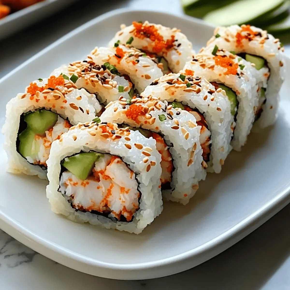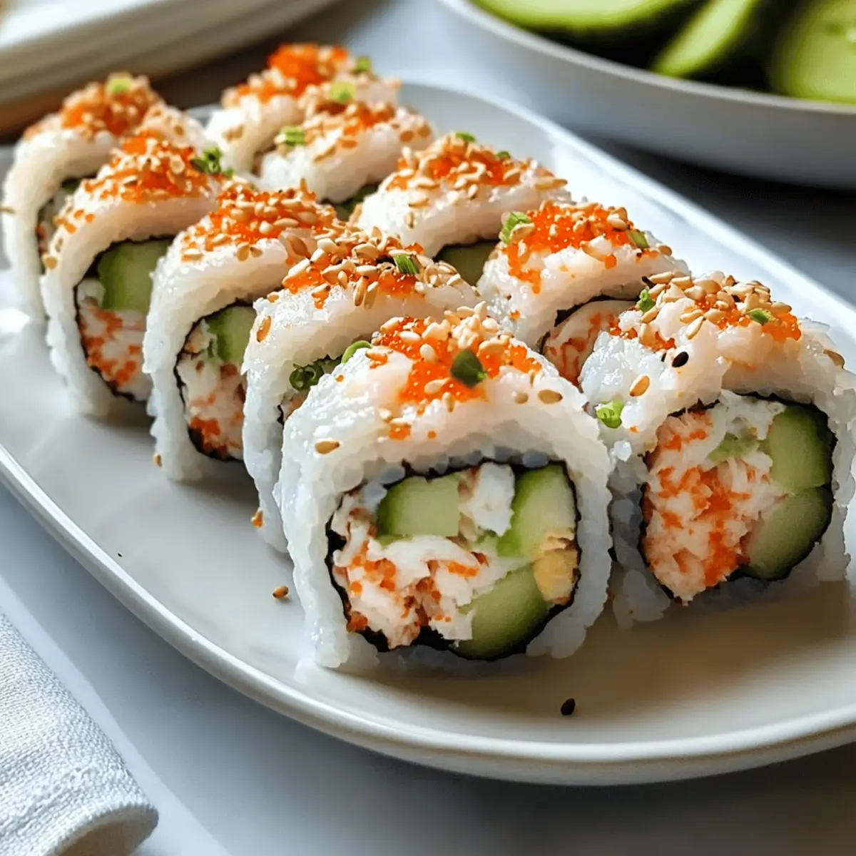 Jede Sushi-Entdeckung beginnt mit einem aufregenden Zusammenspiel der Aromen, das die Sinne verführt. Wenn ich an meine erste Selbstgemachte Scharfe Krabbenrolle denke, erfüllt mich die Vorfreude, diese kulinarische Reise mit euch zu teilen. Diese köstliche Kreation ist nicht nur ein Geschmackserlebnis, sondern auch eine fantastische Möglichkeit, sich selbst in die Welt der japanischen Küche zu begeben. Mit zarter, würziger Krabbe, cremiger Avocado und knackigem Gemüse ist die Scharfe Krabbenrolle eine schnelle und einfache Option für ein DIY-Sushi-Abenteuer. Sie ist eine gesunde Alternative zum Restaurant-Besuch und lässt sich ganz nach deinem persönlichen Geschmack anpassen – perfekt für jeden, der von schnellem Essen genug hat. Bist du bereit, deine ganz eigene Sushi-Rolle zu kreieren? Warum solltest du diese Scharfe Krabbenrolle lieben? Einfachheit, die begeistert: Diese Scharfe Krabbenrolle ist unkompliziert und ermöglicht jedem, auch ohne Sushi-Erfahrung, ein tolles Ergebnis. Vielfältige Anpassungsmöglichkeiten: Du kannst die Schärfe mit mehr oder weniger Sriracha ganz nach deinem Geschmack variieren. Frischer Genuss: Die Kombination aus cremiger Avocado und knackigen Gurken sorgt für einen erfrischenden Biss, der die Geschmacksknospen erfreut. Gesunde Option: Mit etwa 301 Kalorien ist diese Rolle eine leichte Alternative zu herkömmlichem Sushi, sodass du ganz ohne schlechtes Gewissen genießen kannst. Perfekt für jeden Anlass: Ob für einen gemütlichen Abend mit Freunden oder ein schickes Dinner – diese Sushi-Rolle kommt immer gut an! Zutaten für die Scharfe Krabbenrolle • Die Zutatenliste macht es dir einfach, deine eigene köstliche Scharfe Krabbenrolle zu kreieren! Für den Sushi-Reis Sushi-Reis – Kurzkörniger Reis sorgt für die perfekte Sushi-Konsistenz; gründlich ausspülen, bis das Wasser klar ist. Wasser – Gleiche Menge wie Reis verwenden, um die ideale Konsistenz zu erreichen. Reisessig – Fügt eine angenehme Säure hinzu; ungewürzt ist ideal für die Kontrolle der Würze. Zucker – Balanciert die Säure des Reisessigs. Kosheres Salz – Hebt den Geschmack hervor. Für die Füllung Imitation-Krabbenfleisch – Hauptproteinquelle; leicht zu verwenden und keine rohe Verarbeitung nötig. Kewpie-Mayonnaise – Sorgt für Cremigkeit und Geschmack; kann durch normale Mayonnaise ersetzt werden. Sriracha – Gibt der Füllung die gewünschte Schärfe; passe die Menge deinem Geschmack an. Frischer Limettensaft – Bringt Frische; kann durch Zitronensaft ersetzt werden. Sesamöl – Verleiht einen nussigen Geschmack; sparsam verwenden für Authentizität. Für das Gemüse Avocado – Cremige Textur, die die Krabbe perfekt ergänzt; frisch ist am besten. Persische Gurken – Für einen knackigen Biss; kann durch dünne Scheiben normaler Gurken ersetzt werden. Für den Roll Nori-Blätter – Wickeln die Rolle; achte auf gute Qualität, um ein Reißen zu vermeiden. Schwarze und weiße Sesamsamen – Für eine ansprechende Garnitur; optional, aber empfohlen für die Präsentation. Für das Servieren Sojasauce – Ideal zum Dippen; wähle glutenfreie Sojasauce, wenn nötig. Wasabi – Optional für zusätzliche Schärfe. Eingelegter Ingwer – Ein erfrischender Gaumenreiniger zwischen den Bissen. Mit diesen Zutaten kannst du dir deine ganz eigene Scharfe Krabbenrolle zaubern und gegen schnelles Essen antreten! Schritt-für-Schritt-Anleitung für die Scharfe Krabbenrolle Schritt 1: Sushi-Reis vorbereiten Spüle den Sushi-Reis gründlich unter kaltem Wasser, bis das Wasser klar ist, um überschüssige Stärke zu entfernen. Koche dann den Reis in einem Reiskocher mit der gleichen Menge Wasser für etwa 20 Minuten, bis er weich und klebrig ist. Sobald er fertig ist, gib den Reisessig, den Zucker und das Salz hinzu und mische alles vorsichtig mit einem Holzspatel, bis die Flüssigkeit gut eingezogen ist. Schritt 2: Füllung für die Scharfe Krabbenrolle zubereiten In einer Schüssel vermischt du das geschnittene Imitation-Krabbenfleisch mit Kewpie-Mayonnaise, Sriracha, frischem Limettensaft und Sesamöl. Rühre alles gut um, bis die Krabbenfleischstücke gleichmäßig mit der würzigen Mischung überzogen sind. Achte darauf, dass die Füllung eine cremige Konsistenz hat und das gewünschte Maß an Schärfe erreicht wird. Schritt 3: Gemüse vorbereiten Schäle die Avocado und schneide sie in dünne Scheiben, sodass sie sich leicht in der Rolle verteilen lassen. Julienne die persischen Gurken, indem du sie in lange, schmale Streifen schneidest. Diese frischen Zutaten bringen knackige Texturen in die Scharfe Krabbenrolle und sorgen für eine angenehme Abwechslung in jedem Bissen. Schritt 4: Rolle zusammensetzen Lege ein Nori-Blatt auf eine Sushi-Matte und feuchte deine Hände mit Wasser an, um ein Ankleben des Reises zu verhindern. Verteile eine even Schicht Sushi-Reis gleichmäßig auf dem Nori, lasse dabei am oberen Rand einen kleinen Streifen frei. Platziere in der Mitte die vorbereitete Krabbenfüllung sowie die Avocado- und Gurkenscheiben, sodass sie gut sichtbar sind. Schritt 5: Sushi rollen Beginne am unteren Ende der Sushi-Matte und rolle die Scharfe Krabbenrolle vorsichtig, aber fest auf. Achte darauf, die Füllung während des Rollens gut zusammenzupressen, und schließe die Rolle, indem du den freien Nori-Rand leicht anfeuchtest, damit sie gut haftet. Verwende sanften Druck, um die Rolle in eine gleichmäßige Form zu bringen und die Enden gut zu verschließen. Schritt 6: Sushi schneiden und servieren Nehme ein scharfes, feuchtes Messer und schneide die Rolle in gleich große Stücke, idealerweise etwa 2-3 cm dick. Achte darauf, das Messer zwischen den Schnitten immer wieder anzufeuchten, um die Scharfe Krabbenrolle sauber zu schneiden. Serviere die Stücke auf einem Teller und dekoriere sie mit schwarzen und weißen Sesamsamen, Sojasauce, Wasabi und eingelegtem Ingwer. Vorbereiten der Scharfen Krabbenrolle für eine stressfreie Woche Die Scharfe K