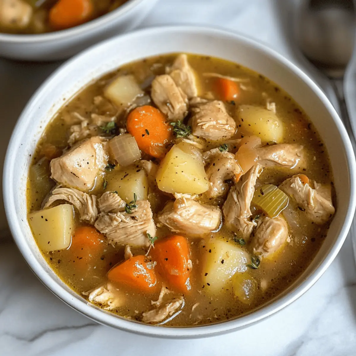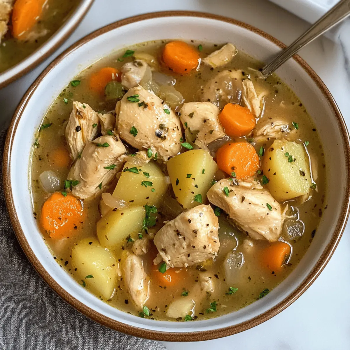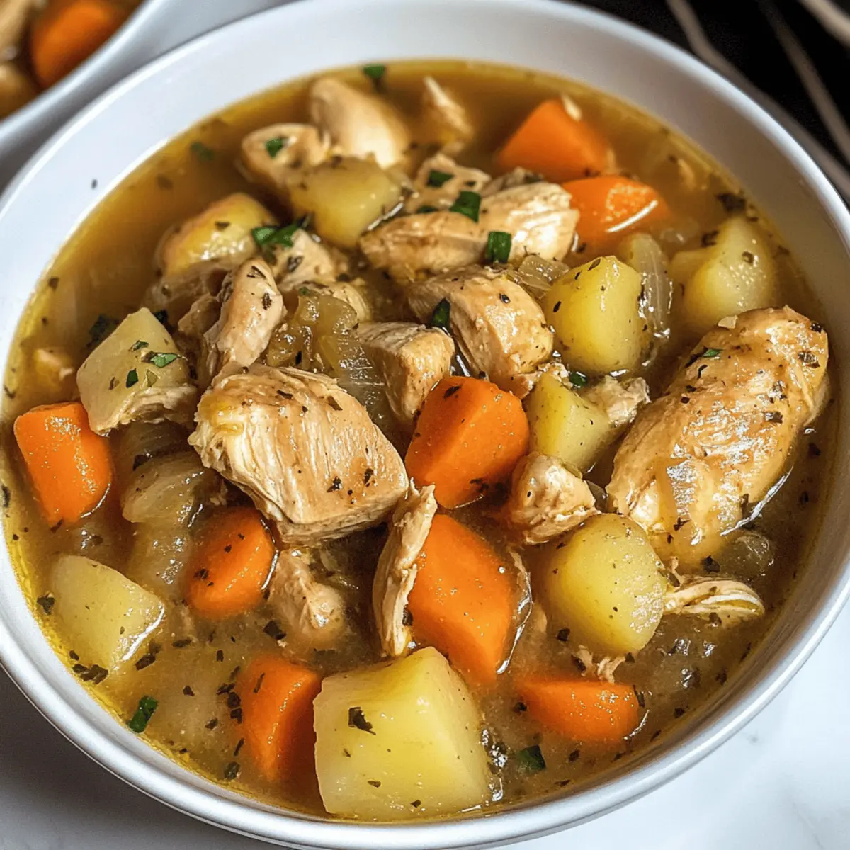 Mit einem köstlichen Duft, der die kühlere Luft durchdringt, steht mein Schmortopf Hähnchen Eintopf bereit, um euch in eine Welt des Komforts zu entführen. An kalten Tagen gibt es nichts Besseres, als einen warmen, herzhaften Eintopf, der nicht nur einfach zuzubereiten ist, sondern auch für die ganze Familie ein Gaumenschmaus darstellt. Dieses Rezept kombiniert zartes Hähnchen mit frischem Gemüse und einer reichhaltigen, sahnigen Brühe, alles bequem in einem Schnellkochtopf zubereitet. Perfekt für stressige Abende und eine hervorragende Möglichkeit, Reste für den nächsten Tag zu genießen! Seid ihr bereit, euch in die Welt des gemütlichen Kochens zu stürzen? Warum wird dieser Eintopf Ihr Favorit? Einfachheit: Die Zubereitung des Schmortopf Hähnchen Eintopfs ist kinderleicht. Alles, was Sie brauchen, ist ein Schnellkochtopf und ein wenig frisches Gemüse! Herzhaft und nahrhaft: Jeder Bissen ist vollgepackt mit zartem Hähnchen und einer reichhaltigen Brühe, die wohltuend ist, besonders an kalten Tagen. Vielfältige Anpassungen: Nutzen Sie dieses Rezept als Basis und personalisieren Sie es nach Belieben – ersetzen Sie das Hähnchen durch Pute oder fügen Sie saisonales Gemüse hinzu. Zeitersparnis: Lassen Sie den Eintopf einfach für sich arbeiten, während Sie die Vorbereitungen für einen gemütlichen Abend treffen oder sich entspannen. Familienfreundlich: Dieser Eintopf kommt bei Groß und Klein gut an und eignet sich hervorragend für ein gemeinsames Abendessen. Finden Sie weitere leckere Ideen für die ganze Familie in unserem Kochbereich. Schmortopf Hähnchen Eintopf Zutaten Für das Hähnchen Hähnchenkeulen – Hauptproteinquelle, die reichhaltigen Geschmack verleiht. Substitution: Auch Hähnchenbrust eignet sich gut für eine magerere Option. Für die Brühe Olivenöl – Zum Anbraten des Hähnchens notwendig, um Aromen zu entwickeln. Hühnchenbrühe – Die Flüssigkeit, die den Eintopf würzt. Substitution: Gemüsebrühe für eine vegetarische Variante. Milch (oder pflanzliche Milch) – Für die Cremigkeit der Brühe. Substitution: Mandel- oder Sojamilch für eine laktosefreie Option. Für das Gemüse Karotten – Für natürliche Süße und Textur. Substitution: Sellerie oder Kürbis können ebenfalls verwendet werden. Sellerie – Bringt Frische und Tiefe. Tipp: Fein hacken, damit alles gleichmäßig gart. Zwiebel – Gibt eine aromatische Geschmacksbasis. Tipp: Klein würfeln für gleichmäßige Verteilung. Knoblauch – Verstärkt den Geschmack mit seinem Aroma. Substitution: Knoblauchpulver als schnelle Alternative (1/4 TL pro Zehe). Kartoffeln – Fügt Fülle und Herzhaftigkeit hinzu. Substitution: Süßkartoffeln oder Pastinaken sind ebenfalls hervorragend. Erbsen – Für Farbe und Süße. Substitution: Gefrorener Mais oder grüne Bohnen sind ebenfalls passend. Für die Konsistenz Allzweckmehl – Dickt den Eintopf ein. Substitution: Glutenfreies Mehl oder Speisestärke als Alternativen. Kräuter (Thymian, Rosmarin) – Verbessern den Geschmack mit frischen Aromen. Hinweis: Frische Kräuter können durch getrocknete ersetzt werden, indem man die dreifache Menge verwendet. Entdecken Sie jetzt, wie einfach es ist, diesen Schmortopf Hähnchen Eintopf zuzubereiten und genießen Sie eine herzhafte, nährstoffreiche Mahlzeit! Schritt-für-Schritt-Anleitung für Schmortopf Hähnchen Eintopf Step 1: Hähnchen anbraten Erhitzen Sie in einem großen Bratentopf etwas Olivenöl bei mittlerer Temperatur. Fügen Sie die Hähnchenkeulen hinzu und braten Sie diese für etwa 5-7 Minuten an, bis sie goldbraun und knusprig sind. Dies verstärkt den Geschmack Ihres Schmortopf Hähnchen Eintopfs und verleiht ihm eine köstliche Basis. Step 2: Gemüse vorbereiten Während das Hähnchen brät, schneiden Sie Zwiebel, Karotten, Sellerie und Kartoffeln in kleine Würfel. Hacken Sie den Knoblauch fein. Diese aromatischen Gemüse verleihen dem Eintopf nicht nur Geschmack, sondern sorgen auch für eine ansprechende Textur im fertigen Gericht. Step 3: Zutaten kombinieren Geben Sie das angebratene Hähnchen zusammen mit den vorbereiteten Gemüsestücken in einen Schnellkochtopf. Fügen Sie die Hühnerbrühe, Milch und die grünen Erbsen hinzu. Streuen Sie die Kräuter, wie Thymian und Rosmarin, über die Mischung und rühren Sie vorsichtig um, damit sich die Aromen gut verbinden. Step 4: Schmoren lassen Setzen Sie den Deckel auf den Schnellkochtopf und stellen Sie den Kochmodus auf „Niedrig“ für 6-8 Stunden ein oder auf „Hoch“ für 3-4 Stunden. Achten Sie darauf, dass der Eintopf köchelt, bis das Hähnchen zart ist und das Gemüse weich und durchgekocht ist. Step 5: Eintopf andicken Wenn der Kochvorgang fast abgeschlossen ist, mischen Sie das Allzweckmehl mit ein wenig Wasser zu einer glatten Mischung. Fügen Sie diese der Eintopf-Mischung in den letzten 30 Minuten hinzu, um die Konsistenz Ihres Schmortopf Hähnchen Eintopfs zu verdicken und ihm eine cremige Textur zu verleihen. Step 6: Abschmecken und servieren Kurz bevor Sie den Eintopf servieren, probieren Sie und passen Sie die Gewürze nach Ihrem Geschmack an. Servieren Sie den Schmortopf Hähnchen Eintopf heiß mit einer Scheibe knusprigem Brot oder über gekochtem Reis, um ein gemütliches und herzhaftes Mahl zu genießen. Lagerungstipps für Schmortopf Hähnchen Eintopf Raumtemperatur: Der Eintopf sollte nicht länger als 2 Stunden bei Raumtemperatur stehen gelassen werden, um das Risiko einer Lebensmittelvergiftung zu vermeiden. Kühlschrank: Bewahren Sie den Schmortopf Hähnchen Eintopf in einem luftdichten Behälter im Kühlschrank auf. So bleibt er bis zu 3-4 Tage frisch und lecker. Tiefkühler: Sie können den Eintopf bis zu 3 Monate im Gefrierschrank aufbewahren. Füllen Sie ihn in einen gefriergeeigneten Behälter und lassen Sie mindestens 1 cm Platz für die Ausdehnung. Aufwärmen: Wenn Sie den gefrorenen Eintopf wieder aufwärmen, lassen Sie ihn im Kühlschrank über Nacht auftauen. Erhitzen Sie ihn dann 