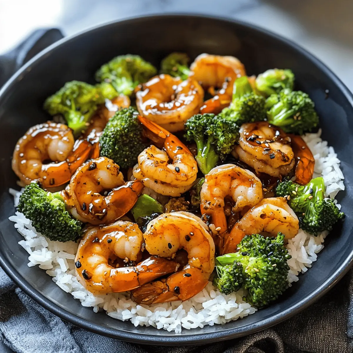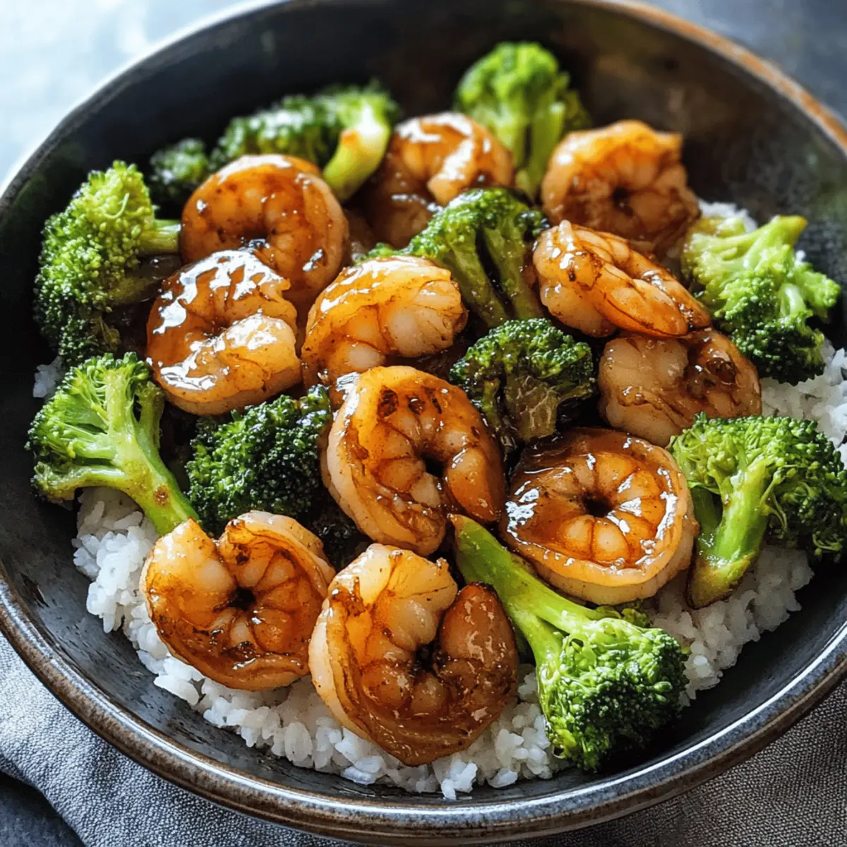 Wenn ich an geschäftige Wochentage denke, ist mein Rezept für die Schnelle 10-Minuten Garnelen-Teriyaki-Pfanne immer mein Lebensretter. In nur zehn Minuten bringe ich ein köstliches, gesundes Abendessen auf den Tisch – viel schneller als jeder Lieferdienst! Diese bunte Pfanne kombiniert zarte Garnelen mit einer verführerischen Teriyaki-Sauce, die eine perfekte Balance aus salzig und süß bietet. Die Flexibilität der Zutaten macht es möglich, die Pfanne nach Lust und Laune zu variieren, und eignet sich hervorragend für die ganze Familie. Egal, ob Sie frisches Gemüse oder Tiefkühlkost verwenden, der Geschmack bleibt wunderbar. Sind Sie bereit, in die Welt des schnellen Kochens einzutauchen und den Geschmack Asiens bei sich zu Hause zu genießen? Warum sollten Sie dieses Rezept ausprobieren? Schnelligkeit: In nur 10 Minuten servieren Sie ein köstliches Gericht, das jede Minute wert ist. Einfachheit: Mit minimalen Zutaten und grundlegenden Kochfähigkeiten gelingt Ihnen dieses Rezept im Handumdrehen. Variabilität: Tauschen Sie die Garnelen gegen Hähnchen oder Tofu aus und verwenden Sie Ihr Lieblingsgemüse – die Möglichkeiten sind unbegrenzt! Gesundheitlich vorteilhaft: Diese Pfanne ist nicht nur proteinreich, sondern auch kalorienarm, was sie zu einer idealen Wahl für eine ausgewogene Ernährung macht. Familienfreundlich: Perfekt für die ganze Familie – jeder wird begeistert sein! Holen Sie sich Tipps für kreative Variationen und weiterführende Rezepte in meinen anderen Beiträgen! Schnelle 10-Minuten Garnelen-Teriyaki-Pfanne Zutaten • Erleben Sie köstliches und schnelles Kochen! Für die Garnelen • 1 lb. mittelgroße Garnelen – Proteinquelle; stellen Sie sicher, dass die Garnelen geschält und entdarmt sind, um das Kochen zu erleichtern. • 1 Teelöffel Öl – Kochmedium für das Anbraten der Garnelen; verwenden Sie Pflanzenöl oder Sesamöl für zusätzlichen Geschmack. Für die Teriyaki-Sauce • 1/4 Tasse natriumarme Sojasauce – Verleiht Salzigkeit und Umami; glutenfreie Sojasauce ist eine gute Option für alle, die Gluten vermeiden möchten. • 2 Esslöffel Honig (oder Zucker nach Wahl) – Süßungsmittel, das die Salzigkeit der Sojasauce ausgleicht; Maple Syrup ist eine schmackhafte Alternative. • 1 Knoblauchzehe, gehackt – Aromatischer Geschmack; Knoblauchpulver kann schnell verwendet werden, falls nötig. • 1 Teelöffel Sesamöl (optional) – Fügt Nussigkeit hinzu; kann weggelassen werden, ohne den Geschmack zu stark zu beeinflussen. • 1/2 Teelöffel gemahlener Ingwer – Wärmender Gewürzgeschmack; frischer Ingwer kann den Geschmack noch intensiver machen. Für die Sauce-Konsistenz • 1 Esslöffel Maisstärke – Verdickt die Sauce; Sie können für eine glutenfreie Wahl auch Pfeilwurzelstärke verwenden. • 1/2 Tasse Wasser, geteilt – Um die Konsistenz der Sauce anzupassen; hilft bei der Herstellung der Soße. Für das Gemüse • 1 Tasse blanchierte Brokkoliröschen – Gemüsekomponente; kann durch Paprika, Zuckerschoten oder jede gewünschte Gemüsesorte ersetzt werden, die schnell gart. Zum Servieren • Gedämpfter weißer Reis oder Nudeln – Kohlenhydratquelle; brauner Reis oder Vollkornnudeln bieten eine nährstoffreichere Option. Genießen Sie Ihre Schnelle 10-Minuten Garnelen-Teriyaki-Pfanne, die einfach zuzubereiten ist und die ganze Familie begeistert! Schritt-für-Schritt-Anleitung für die Schnelle 10-Minuten Garnelen-Teriyaki-Pfanne Step 1: Garnelen anbraten Erhitzen Sie in einer großen Pfanne bei mittlerer bis hoher Hitze 1 Teelöffel Öl. Geben Sie die geschälten und entdarmten Garnelen hinein und braten Sie sie für 2–3 Minuten auf jeder Seite, bis sie schön rosa und leicht gebräunt sind. Achten Sie darauf, dass sie nicht überkochen, um eine zarte Textur zu gewährleisten. Step 2: Sauce vorbereiten Entnehmen Sie die Garnelen aus der Pfanne und stellen Sie sie beiseite. Nutzen Sie dieselbe Pfanne, um 1/4 Tasse Wasser, die natriumarme Sojasauce, 2 Esslöffel Honig, den gehackten Knoblauch, das optional Sesamöl und die 1/2 Teelöffel gemahlener Ingwer hinzuzufügen. Rühren Sie alles gut um und bringen Sie die Mischung zum Kochen. Step 3: Sauce andicken In einer kleinen Schüssel vermengen Sie 1 Esslöffel Maisstärke mit der verbleibenden 1/4 Tasse Wasser, bis sie glatt ist. Fügen Sie diese Mischung langsam zur kochenden Sauce in der Pfanne hinzu und rühren Sie dabei ständig. Lassen Sie die Sauce für 3–4 Minuten köcheln, bis sie dicklich wird und schön glänzt. Step 4: Garnelen und Gemüse hinzufügen Geben Sie die zuvor angebratenen Garnelen sowie die blanchierten Brokkoliröschen zurück in die Pfanne. Rühren Sie alles gut um, sodass die Garnelen und das Gemüse gleichmäßig mit der Sauce überzogen sind. Lassen Sie alles für 1–2 Minuten erhitzen, damit sich die Aromen gut vermischen. Step 5: Servieren Servieren Sie die Schnelle 10-Minuten Garnelen-Teriyaki-Pfanne warm über gedämpftem weißen Reis oder Nudeln. Garnieren Sie nach Wunsch mit frischen Kräutern oder Sesamsamen für zusätzlichen Geschmack und eine ansprechende Präsentation. Genießen Sie Ihr schnelles, gesundes Abendessen! Vorbereitung für die Schnelle 10-Minuten Garnelen-Teriyaki-Pfanne Bereiten Sie die Schnelle 10-Minuten Garnelen-Teriyaki-Pfanne ideal vor, indem Sie verschiedene Komponenten im Voraus zubereiten, um wertvolle Zeit zu sparen! Sie können das Gemüse bis zu 3 Tage im Voraus blanchieren und im Kühlschrank lagern, damit es knackig bleibt. Auch die Garnelen können bereits bis zu 24 Stunden vor dem Kochen aufgetaut und mariniert werden, um den Geschmack zu intensivieren. Stellen Sie sicher, dass Sie alle Zutaten bereitstellen, bevor Sie mit dem Kochen beginnen, um den 10-Minuten-Ziel zu erreichen. Wenn Sie bereit sind zu servieren, erhitzen Sie die Garnelen und das Gemüse schnell in der Teriyaki-Sauce und genießen Sie ein ebenso köstliches wie schnelles Abendessen, das perfekt für geschäftige Wochentage 