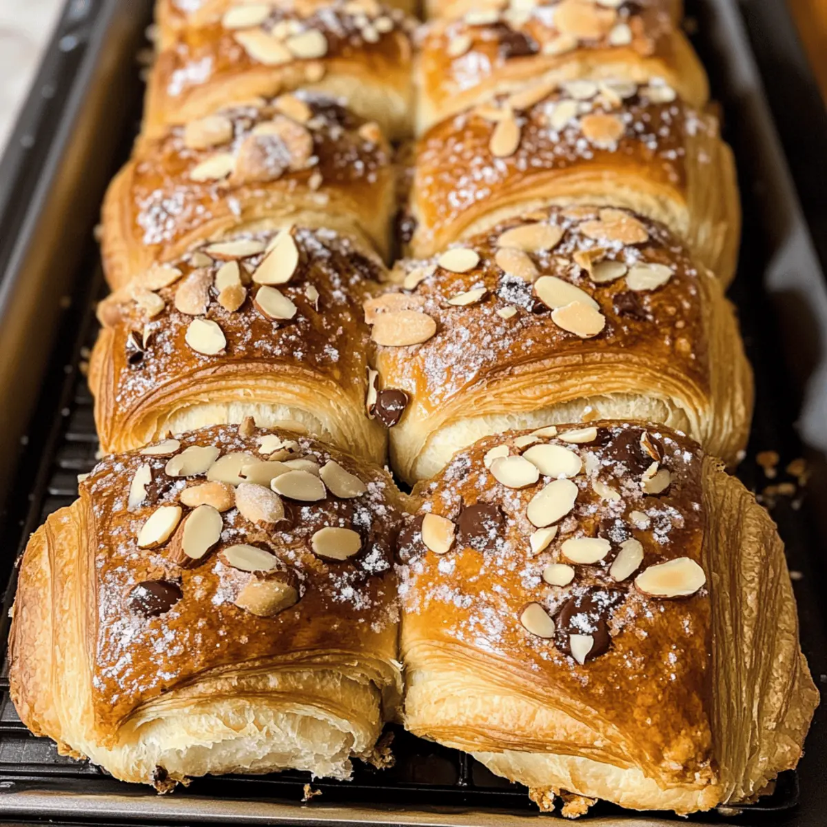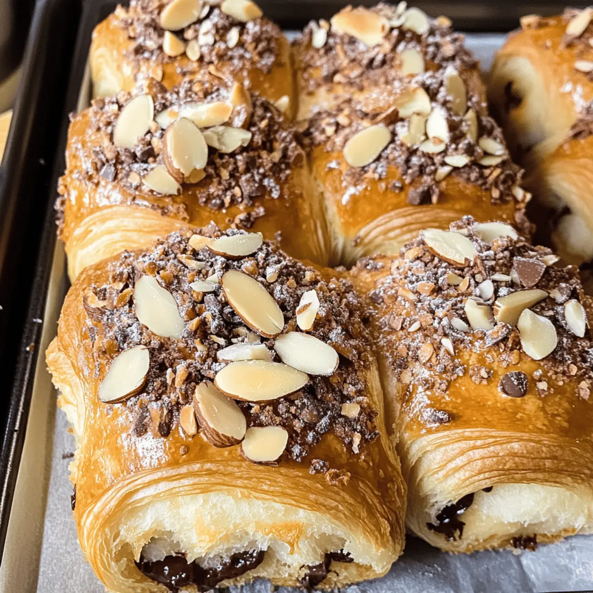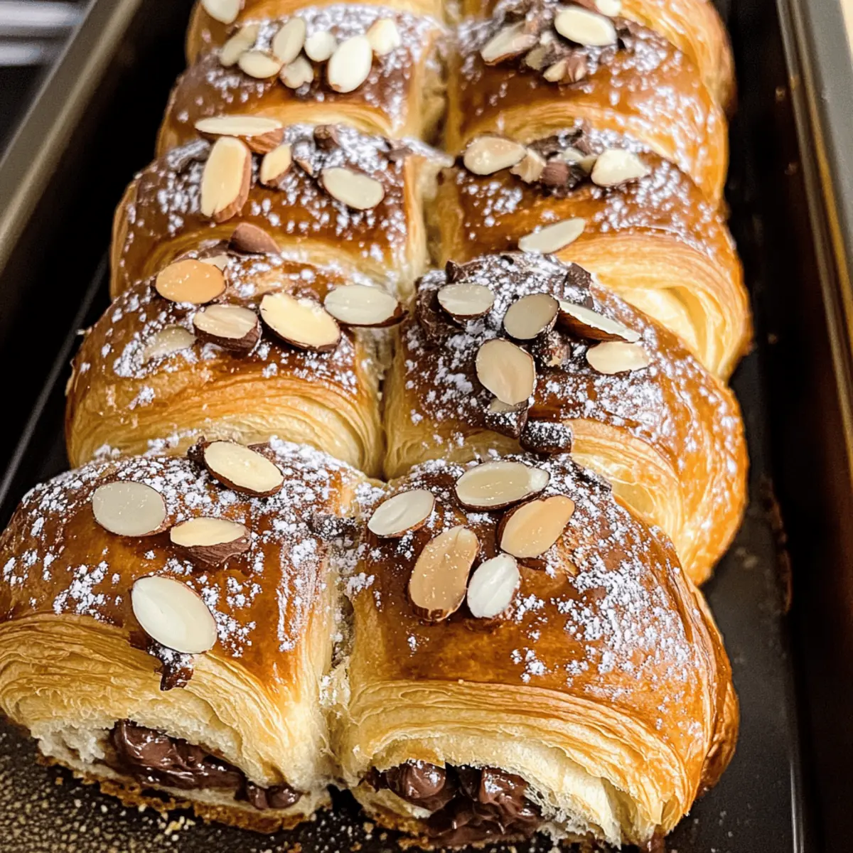 Eines Morgens, als ich gerade mit einer Tasse Kaffee auf dem Balkon saß, überkam mich die Lust nach etwas Süßem – einem Schokoladenmandelcrossaintsrollen, um genau zu sein. Diese himmlischen, butterweichen Rollen bieten nicht nur den Komfort von frisch gebackenem Gebäck, sondern lassen sich auch in weniger als einer Stunde zubereiten. Perfekt für alle, die eine köstliche und unkomplizierte Leckerei suchen! Mit einer Füllung aus cremigem Mandelgeschmack und schmelzender Schokolade sind diese Schokoladenmandelcrossaintsrollen ein wahrer Genuss. Außerdem sind sie ideal für die Zubereitung im Voraus und machen das Frühstück zu einem besonderen Moment. Wer kann da schon widerstehen? Lass uns gemeinsam in die Welt des Backens eintauchen und entdecken, wie du diese einfachen, aber schmackhaften Rolls zaubern kannst! Warum sind diese Croissants so besonders? Einfache Zubereitung: Du benötigst keine speziellen Backfähigkeiten, um diese köstlichen Schokoladenmandelcroissantsrollen zu meistern. Vielfältige Variationen: Mit verschiedenen Schokoladensorten und zusätzlichen Aromen kannst du deiner Kreativität freien Lauf lassen. Himmlischer Geschmack: Die Kombination aus cremigem Mandelgeschmack und schmelzender Schokolade wird dich begeistern. Perfekte Frühstücksoption: Diese Rolls sind ideal für ein schnelles, aber luxuriöses Frühstück, besonders wenn du sie am Vorabend vorbereitest. Frische aus dem Ofen: In weniger als einer Stunde zauberst du eine Leckerei, die frisch und warm genau das richtige für deinen Morgen ist! Schokoladenmandelcroissantsrollen Zutaten Almondsimplexir: – Hält die Rollen feucht und gibt ihnen ein intensives Mandelaroma. Mandelmehl: – Sorgt für nussigen Geschmack und die perfekte Textur. Zucker: – Fügt die nötige Süße hinzu; für mehr Tiefe kann brauner Zucker verwendet werden. Eine Prise Salz: – Ausgewogenheit der Süße. Zimmerwarme Butter: – Sorgt für einen reichhaltigen Geschmack und zarte Feuchtigkeit. Vanilleextrakt: – Verstärkt den Geschmack; kein direkter Ersatz, kann aber weggelassen werden. Mandel-Extrakt: – Der Schlüssel zu intensivem Mandelgeschmack; ersetzbar durch Vanille. Eier: – Binden die Füllung; kein direkter Ersatz, Auslassung verändert die Textur. Halbbitterschokoladenstückchen: – Fügen geschmolzene Süße hinzu, dunkel macht den Geschmack reichhaltiger. Geschnittene Mandeln: – Für den knusprigen Topping. Schritt-für-Schritt-Anleitung für Schokoladenmandelcroissantsrollen Step 1: Mandel-Sirup vorbereiten Beginne damit, einen kleinen Topf auf mittlerer Hitze zu stellen. Gib Wasser, Zucker und Mandel-Extrakt hinzu. Lass die Mischung für etwa 5 Minuten köcheln, bis der Zucker vollständig aufgelöst ist und ein angenehmer Mandelduft entsteht. Dieser Sirup sorgt dafür, dass deine Schokoladenmandelcroissantsrollen schön feucht werden. Step 2: Füllung zubereiten In einer großen Schüssel vermische das Mandelmehl, den Zucker, eine Prise Salz, die Zimmerwarme Butter, den Vanilleextrakt, den Mandel-Extrakt und die Eier. Mische alles mit einem Handmixer oder einem Schneebesen, bis eine glatte und cremige Masse entsteht. Diese köstliche Füllung wird deinem Rezept den vollen Mandelgeschmack verleihen. Step 3: Rollen zusammenstellen Nimm die Croissant-Teigrollen und schneide sie mit einem scharfen Messer vorsichtig in zwei Hälften. Bestreiche jeden Hälften großzügig mit dem vorbereiteten Mandel-Sirup. Verteilt die Füllung gleichmäßig auf die untere Hälfte jeder Rolle und gib nach Belieben Schokoladenstückchen darauf. Diese Schritte sind wichtig, um das Beste aus deinen Schokoladenmandelcroissantsrollen herauszuholen. Step 4: Rollen backen Setze die oberen Hälften der Rollen auf die Füllung und drücke sie leicht an. Löffle etwas von der restlichen Füllung oben drauf und verteile die geschnittenen Mandeln darüber. Lege die Rollen auf ein mit Backpapier ausgelegtes Blech und schiebe es in den vorgeheizten Ofen bei 175°C (350°F). Backe die Schokoladenmandelcroissantsrollen für 12-15 Minuten, bis sie goldbraun und oben sprudelnd sind. Step 5: Abkühlen und servieren Lass die Schokoladenmandelcroissantsrollen für einige Minuten abkühlen, bevor du sie servierst. Wenn du magst, kannst du sie mit Puderzucker bestäuben, um einen zusätzlichen süßen Touch hinzuzufügen. Die warmen, aromatischen Rollen sind nun bereit, genossen zu werden und bringen jeden Morgen zum Strahlen! Variationen der Schokoladenmandelcroissantsrollen Entfalte deine Kreativität in der Küche und passe dieses Rezept nach deinem Geschmack an! Dunkle Schokolade: Ersetze die halbsüßen Schokoladenstückchen durch dunkle Schokolade für einen intensiveren Geschmack. Diese Variation ist perfekt für Schokoladenliebhaber, die den herben Kontrast lieben. Fruchtige Note: Füge frische Himbeeren oder Erdbeermarmelade zur Füllung hinzu, um einen fruchtigen Twist zu kreieren. Diese frischen Aromen bringen eine lebendige Frische mit sich. Pistazien-Einlage: Mische gehackte Pistazien in die Füllung für eine nussige Überraschung. Diese kleine, aber feine Zutat wird deinen Rolls eine besondere Note verleihen. Zimt-Zucker-Topping: Bestreue die Oberseite der Croissants vor dem Backen mit einer Mischung aus Zimt und Zucker für ein extra geschmackvolles Aroma. Der Zimt gibt einen warmen, einladenden Duft ab, wenn sie backen. Vegane Option: Verwende pflanzliche Butter und anstelle von Eiern Leinsamen-Ersatz für eine vegane Variante. Diese Anpassung sorgt dafür, dass alle etwas von diesen köstlichen Rolls genießen können. Nussiges Aroma: Füge geröstete Haselnüsse zur Füllung oder zum Topping hinzu, um einen zusätzlichen Crunch und Geschmack zu integrieren. Der nussige Charakter harmoniert wunderbar mit der Schokolade. Karamell-Liebe: Verteile etwas Karamellsoße über die Füllung für eine süße Überraschung. Das schmelzenden Karamell bringt eine köstliche, klebrige Süße in deine Rolls. Kokos-Touch: Streue gerös