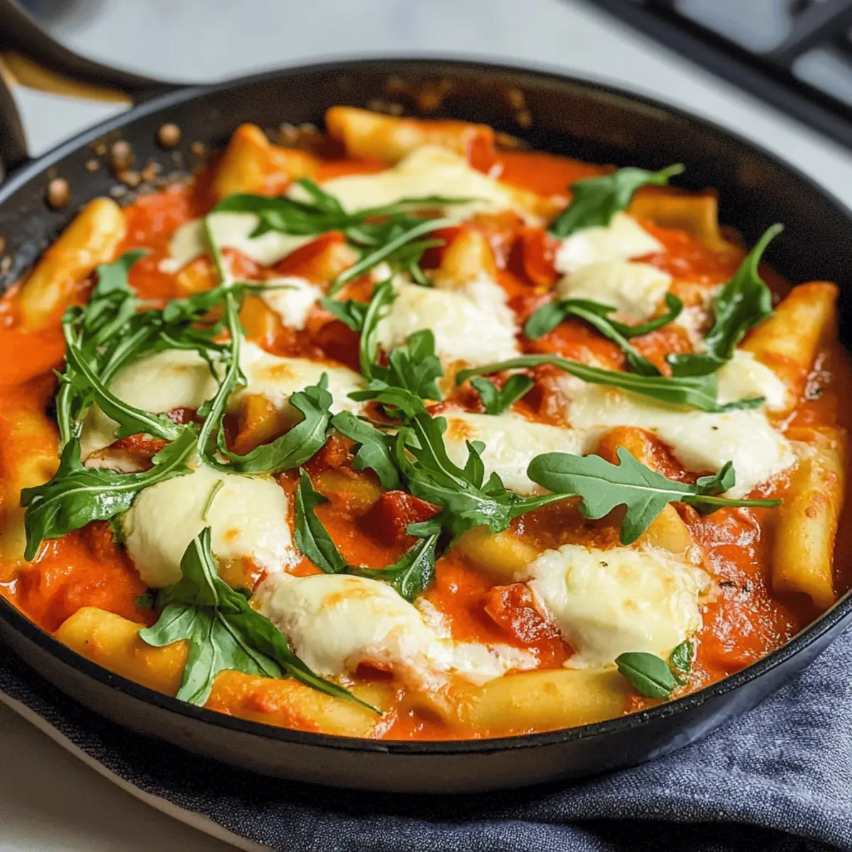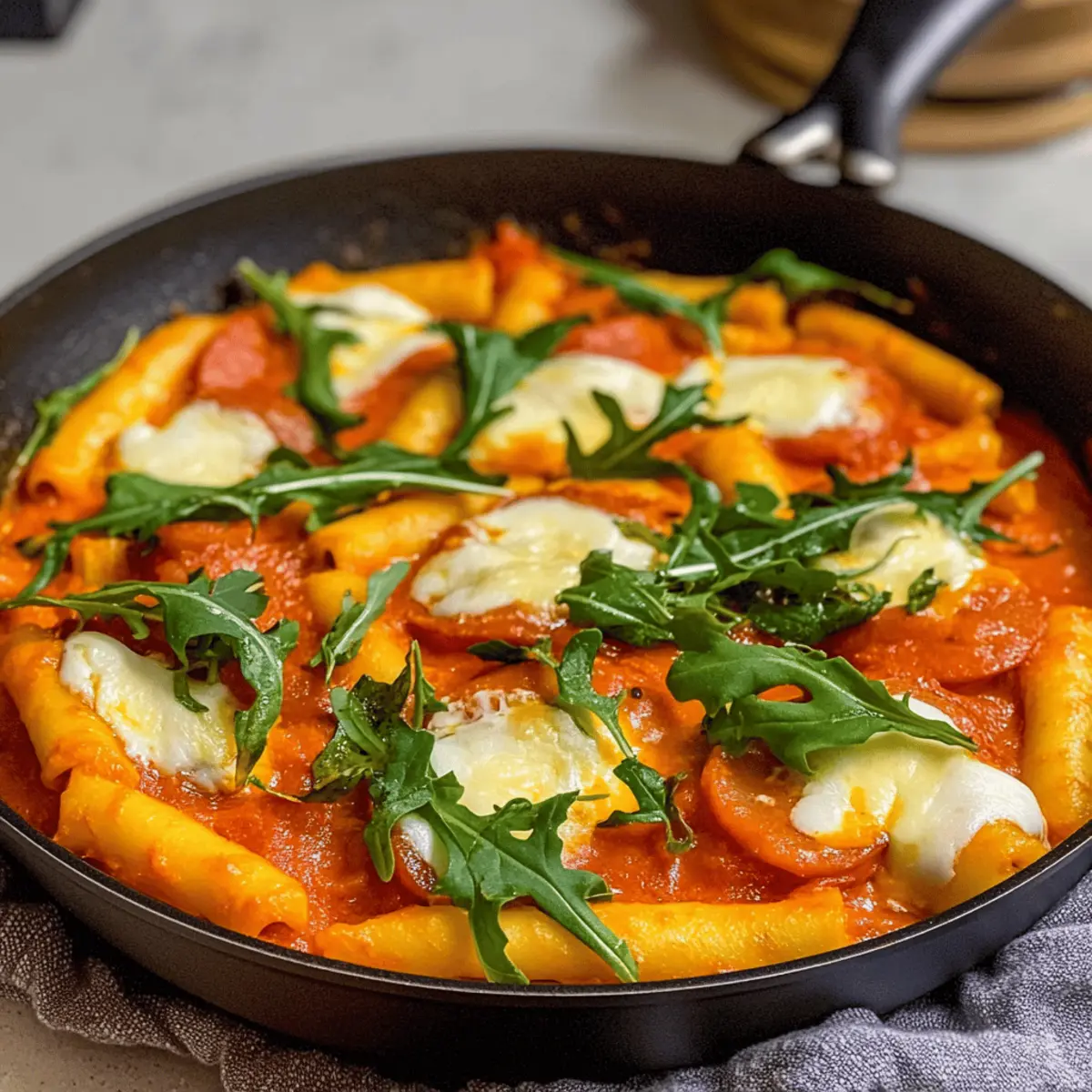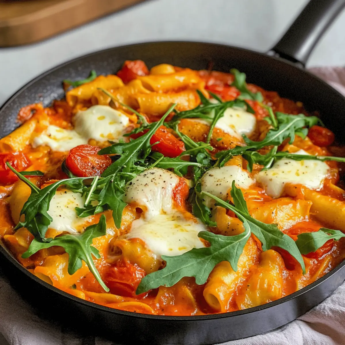 7. Serviere die Schupfnudelpfanne heiß und garniere sie nach Belieben mit frischem Rucola und einer Prise frisch gemahlenem Pfeffer.