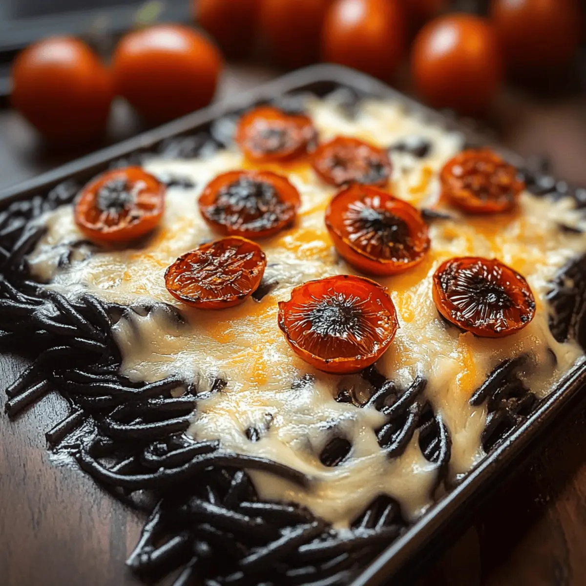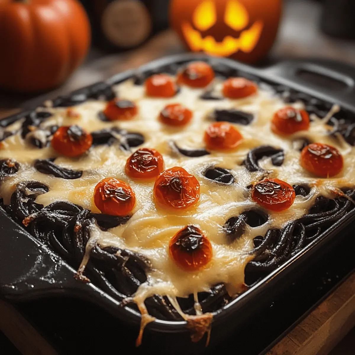 Ein kreativer und herzhafter Auflauf mit dunkler Pasta und zarten Tomaten – das perfekte Gericht für Halloween!