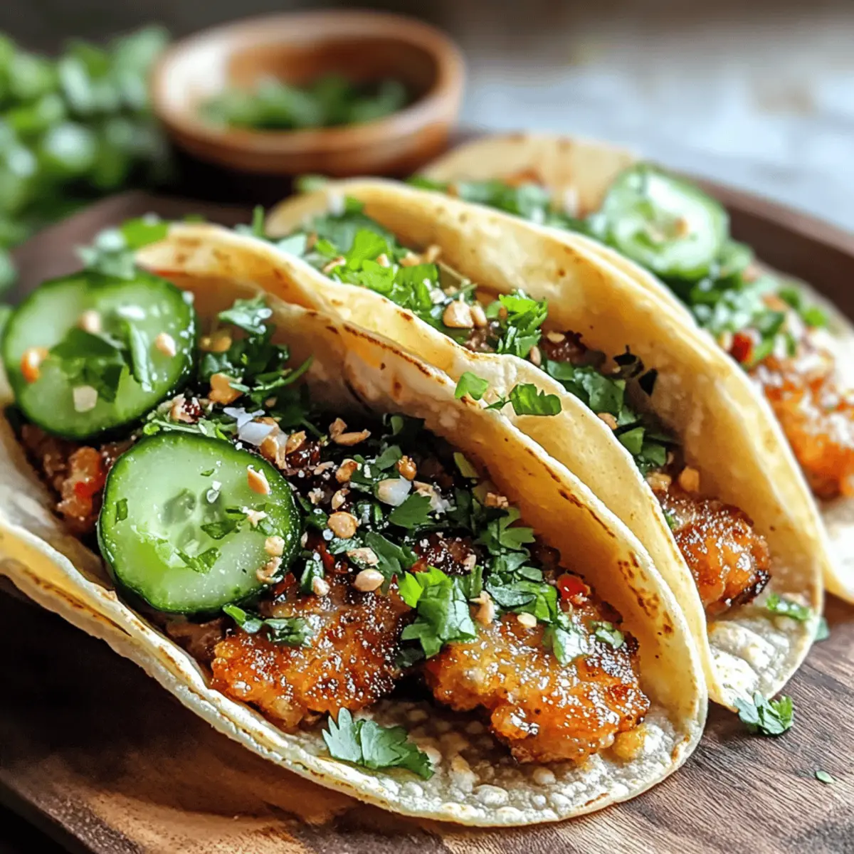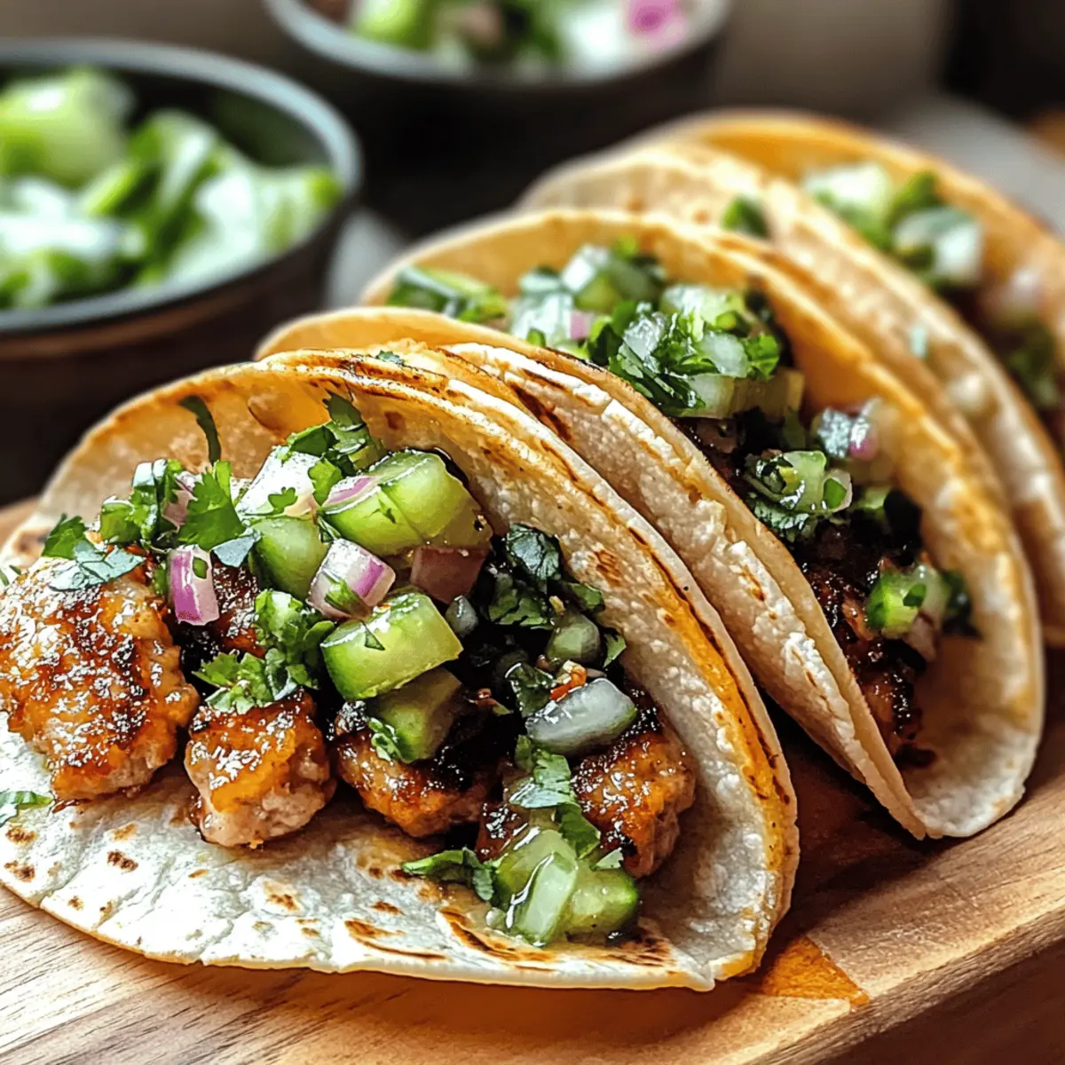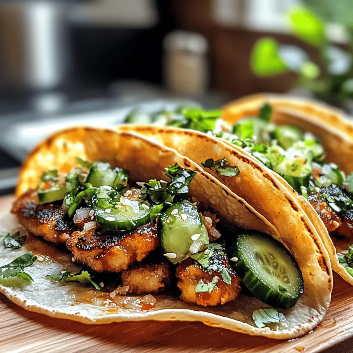 Hast du schon einmal einen Taco erlebt, der die besten Elemente deiner Lieblingsdumplings vereint? Die Smash Dumpling Tacos sind genau das – eine ganz besondere Fusion, die dem bekannten Smash-Burger-Taco-Trend eine neue Wendung gibt! Mit saftigem Schweinefleisch als Füllung, knusprigen Tortillas und frischen, eingelegten Gurken sind diese Tacos die perfekte Lösung für ein schnelles und leichtes Abendessen unter der Woche. Sie sind nicht nur ein wahrer Genuss für den Gaumen, sondern auch einfach zuzubereiten. Sie super einfach an einem stressigen Abend und das Beste: In wenigen Minuten bist du bereit, sie zu genießen! Neugierig, wie du dieses Rezept und den köstlichen Crunch selbst erleben kannst? Warum wirst du diese Tacos lieben? Einzigartiger Geschmack: Die Kombination aus zartem Schweinefleisch und knackigen Tortillas bietet ein unvergessliches Geschmackserlebnis. Rasches Rezept: In weniger als 30 Minuten hast du ein vollwertiges Abendessen, perfekt für stressige Wochentage. Einfachheit: Dieses Rezept ist so unkompliziert, dass auch Anfänger in der Küche Spaß daran haben werden. Variationsmöglichkeiten: Ob mit Hähnchen oder Tofu – du kannst die Füllung ganz nach deinem Geschmack anpassen! Perfekte Textur: Die knusprige Hülle und das saftige Innere sind ein echter Genuss, der Erinnerungen an deinen Lieblingsdumpling weckt. Probiere diese Tacos unbedingt mit einer Seite von asiatischem Slaw, um das Erlebnis abzurunden! Smash Dumpling Tacos Zutaten Hinweis: Unerlässlich für ein perfektes Taco-Erlebnis! Für die Füllung: Schweinefleisch – ideal für den authentischen Geschmack; eine leichte Alternative wäre gemahlenes Truthahnfleisch. Für die Tortillas: Mini-Tortillas – aus Mais oder Mehl sorgen für die optimale Knusprigkeit. Für die eingelegten Gurken: Gurken – schnell eingelegt für Frische; Karotten können als schmackhafte Abwechslung verwendet werden. Für die Dipsauce: Dumpling-Dipsauce – verleiht den Tacos einen köstlichen Geschmack; eine Mischung aus Sojasauce und Sesamöl ist ebenfalls leicht und lecker. Schritt-für-Schritt-Anleitung für Smash Dumpling Tacos ** Schritt 1: Füllung vorbereiten** Beginne damit, das Schweinefleisch in einer Schüssel mit deinen Lieblingsgewürzen zu vermengen. Forme kleine Patties, die ungefähr die Größe deiner Tortillas haben. Dies kann etwa 10 Minuten dauern. Die Mischung sollte gut zusammenhalten, damit sie beim Braten nicht zerfällt. ** Schritt 2: Öl erhitzen** Erhitze in einer großen beschichteten Pfanne bei mittlerer bis hoher Hitze ausreichend Öl, sodass der Boden der Pfanne gut bedeckt ist. Warte etwa 2-3 Minuten, bis das Öl heiß genug ist, um die Tortillas schön knusprig zu braten. Ein guter Indikator ist, wenn kleine Bläschen am Pfannenrand erscheinen. ** Schritt 3: Tortillas braten** Lege eine Mini-Tortilla in die heiße Pfanne und platziere ein Patty darauf. Mit einem Pfannenwender drückst du das Patty leicht nach unten, sodass es den Kontakt mit der Tortilla maximiert. Dieser Schritt sollte ca. 30 Sekunden dauern, um eine gute Verbindung herzustellen. ** Schritt 4: Knusprig braten** Frittieren die Tortilla und das Patty zusammen für 2-3 Minuten, bis die Unterseite goldbraun und knusprig aussieht. Drehe sie vorsichtig um und brate die andere Seite für weitere 2-3 Minuten. Achte darauf, dass sie nicht verbrennt; die perfekte außen goldbraune Farbe ist der Schlüssel zu den Smash Dumpling Tacos. ** Schritt 5: Gurken einlegen** Während die Tacos braten, kannst du schnell die Gurken zubereiten. Schneide sie in dünne Scheiben und lege sie in eine Schüssel mit Essig, Zucker und einer Prise Salz. Lass die Mischung für mindestens 5 Minuten ziehen, damit die Gurken gut durchziehen und frisch werden. ** Schritt 6: Tacos zusammenstellen** Nehme die knusprigen Tacos aus der Pfanne und lege sie auf einen Teller. Fülle sie mit den gebratenen Patties und den eingelegten Gurkenscheiben. Verteile den Dumpling-Dipsauce darüber, um den herzhaften Geschmack noch zu verstärken. Achte darauf, die Tacos sofort zu servieren, damit sie frisch und knusprig bleiben. ** Schritt 7: Servieren und genießen** Die Smash Dumpling Tacos sind nun bereit, serviert zu werden! Schnapp dir ein paar Tacos und genieße diese perfekte Kombination aus knuspriger Textur und herzhaftem Geschmack. Diese schmackhaften Tacos sind die ideale Wahl für ein schnelles Abendessen oder ein geselliges Beisammensein mit Freunden und Familie! Tipps für die besten Smash Dumpling Tacos Öltemperatur prüfen: Stelle sicher, dass das Öl heiß genug ist, bevor du die Tortillas hinzufügst. Ein guter Test sind kleine Bläschen am Pfannenrand. Pan nicht überfüllen: Vermeide es, zu viele Tacos gleichzeitig zu braten. So bleibt die Temperatur konstant und die Tacos werden schön knusprig. Resteverwertung: Wenn du Reste hast, erwärme die Tacos entweder in der Mikrowelle oder brate sie in der Pfanne, um die Knusprigkeit wiederherzustellen. Würzen: Sei großzügig mit Gewürzen in der Füllung, um den Geschmack der Smash Dumpling Tacos zu intensivieren. Frische Gurken: Die eingelegten Gurken bringen nicht nur Frische, sondern sorgen auch für einen herrlichen Kontrast zur herzhaften Füllung. Was passt zu Smash Dumpling Tacos? Die perfekte Ergänzung zu diesen knusprigen Tacos erwartet dich, um ein rundum gelungenes Abendessen zu kreieren! Asiatischer Slaw: Dieser frische Salat ergänzt die herzhaften Tacos perfekt und sorgt für einen knackigen Kontrast. Genießen kannst du den Slaw ganz einfach mit einem leichten Dressing aus Limettensaft und Sesamöl. Guacamole: Cremige Guacamole bringt eine köstliche Frische und ein Hauch von Liebe in jeden Biss deiner Tacos. Der Geschmack von Avocado harmoniert wunderbar mit dem würzigen Schweinefleisch. Süßsaure Karotten: Diese schnell eingelegten Karotten sorgen für eine angenehme Süße und einen knackigen Biss. Die Kombination aus süß und sauer vervollständigt die Aromen der Smash Dumpling T