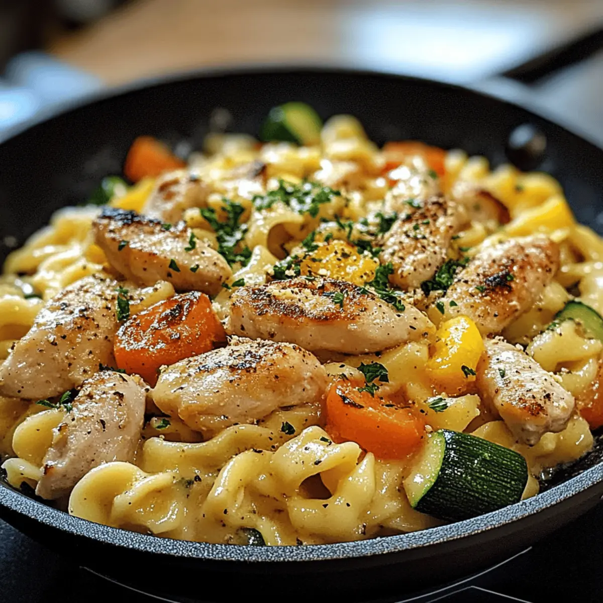 Ein köstlicher Duft schwebte durch die Küche, als ich die ersten Spätzle in den Topf gegeben habe. Die Spätzle-Pfanne, voller frisch zubereiteter Spätzle, zartem Hähnchen und bunten Gemüse, ist bei uns der absolute Hit. Die Zeit für die Zubereitung ist herzlich gering, was sie zur perfekten Wahl für stressige Wochentage macht. Und das Beste daran? Jeder in der Familie wird von den verschiedenen Texturen und Aromen begeistert sein. Egal, ob als herzhaftes Abendessen oder wenig Zeit für die Zubereitung bleibt – diese Pfanne bringt nicht nur Geschmack auf den Tisch, sondern sorgt auch für eine ausgewogene Mahlzeit. Seid ihr bereit, die leckerste Spätzle-Pfanne zu entdecken? Warum ist diese Spätzle-Pfanne besonders? Einfachheit: Die Zubereitung der Spätzle-Pfanne ist kinderleicht und benötigt keine komplizierten Techniken. Ideal für Anfänger und erfahrene Köche! Vielseitigkeit: Egal ob mit Hähnchen, Garnelen oder einer vegetarischen Variante – diese Pfanne lässt sich ganz nach Belieben anpassen. Genuss: Die Kombination aus zarten Spätzle, saftigem Hähnchen und bunten, knackigen Gemüse ergibt ein Geschmackserlebnis, das jeden begeistert. Schnell zubereitet: In nur wenigen Schritten habt ihr ein vollwertiges und gesundes Abendessen auf dem Tisch – perfekt für hektische Wochentage! Familienfreundlich: Diese Spätzle-Pfanne bringt die ganze Familie zusammen und macht das Essen zu einem besonderen Moment, den man teilen kann. Probiert zusätzlich, die Spätzle mit saisonalem Gemüse oder einer köstlichen Soße zu verfeinern, um das Gericht noch interessanter zu gestalten! Spätzle-Pfanne Zutaten • Diese köstliche Spätzle-Pfanne ist schnell und einfach zuzubereiten! Für den Teig: 250 g Mehl (Mehl) – bildet die Grundlage für die Spätzle; Vollkornmehl bietet eine gesunde Variante. 3 Eier – binden die Zutaten und sorgen für eine reichhaltige Textur; alternativ können Leinsamen-Eier verwendet werden. Prise Salz – verbessert den Geschmack; je nach persönlichem Bedarf anpassen. Für die Pfanne: Hühnerbrust (gewürfelt) – das Hauptprotein, das für die Herzhaftigkeit sorgt; kann durch Pute oder Rind ersetzt werden. Paprika (bunte Farben) – fügt Süße und visuelle Attraktivität hinzu; jede saisonale Gemüsesorte kann substituiert werden. Zucchini (in Scheiben) – bringt Frische und Feuchtigkeit; Brokkoli oder Spargel sind alternative Optionen. Zwiebeln (dünn geschnitten) – steigern die Geschmacksfülle; süße Zwiebeln können die Süße des Gerichts verstärken. Gemüsebrühe – fügt Geschmack und Feuchtigkeit hinzu; verwenden Sie hausgemachte oder natriumarme Brühe, um den Salzgehalt zu kontrollieren. Petersilie (frisch gehackt) – eine garnierso, die Frische und Farbe hinzufügt; auch Basilikum oder Schnittlauch sind geeignete Alternativen. Step-by-Step Instructions for Spätzle-Pfanne Step 1: Teigzubereitung In einer großen Schüssel das Mehl, die drei Eier und eine Prise Salz gut vermengen, bis ein glatter Spätzle-Teig entsteht. Achten Sie darauf, dass der Teig nicht überarbeitet wird, um die lockere Konsistenz zu bewahren. Lassen Sie den Teig dann für 30 Minuten ruhen, damit sich die Zutaten gut verbinden. Step 2: Hähnchen anbraten Erhitzen Sie in einer großen Pfanne etwas Öl bei mittlerer Hitze. Geben Sie die gewürfelte Hühnerbrust hinzu und braten Sie diese für 5-7 Minuten, bis sie goldbraun ist. Achten Sie darauf, das Hähnchen während des Bratens zu würzen; eine Prise Salz und Pfeffer verleihen zusätzliches Aroma. Step 3: Gemüse hinzufügen Fügen Sie die dünn geschnittenen Zwiebeln in die Pfanne und sautieren Sie sie, bis sie durchsichtig sind, etwa 2-3 Minuten. Geben Sie anschließend die gewürfelten Paprika und die Zucchini-Scheiben dazu und kochen Sie das Ganze für weitere 5 Minuten, bis das Gemüse leicht weich wird, aber noch Biss hat. Step 4: Spätzle kochen Setzen Sie einen großen Topf mit gesalzenem Wasser auf und bringen Sie ihn zum Kochen. Drücken Sie dann den ruhenden Teig in das kochende Wasser; alternativ können Sie einen Spätzlehobel verwenden. Lassen Sie die Spätzle 2-3 Minuten kochen, bis sie an die Oberfläche steigen – das ist ein Zeichen, dass sie fertig sind. Step 5: Zutaten kombinieren Nehmen Sie die gekochten Spätzle mit einer Schaumkelle aus dem Wasser und geben Sie sie direkt in die Pfanne mit dem Hähnchen und dem Gemüse. Gießen Sie die Gemüsebrühe über die Mischung und lassen Sie alles bei mittlerer Hitze für einige Minuten zusammen köcheln, damit die Aromen gut durchziehen. Step 6: Garnierung & Servieren Nehmen Sie die Pfanne vom Herd und garnieren Sie Ihre köstliche Spätzle-Pfanne mit frisch gehackter Petersilie, die sowohl Farbe als auch Frische hinzufügt. Servieren Sie das Gericht sofort heiß und lassen Sie sich von den verschiedenen Texturen und Aromen begeistern! Spätzle-Pfanne: Köstliche Variationen zum Ausprobieren Es gibt so viele Möglichkeiten, diese köstliche Spätzle-Pfanne zu variieren und nach deinem Geschmack anzupassen! Lass deiner Kreativität freien Lauf und entdecke die vielen Aromen, die du hinzufügen kannst. Dairy-Free: Ersetze die Gemüsebrühe durch ungesüßte pflanzliche Brühe und lasse die Sahne weg. So bleibt das Gericht leicht und gesund. Vegetarisch: Tausche die Hühnerbrust gegen gebratene Tofu-Würfel oder Kichererbsen aus. So erhältst du eine herzhaft-leichte Variante. Schärfer: Füge frische Chilis oder eine Prise Cayennepfeffer hinzu, um deiner Spätzle-Pfanne eine feurige Note zu verleihen. Perfekt für alle, die es scharf mögen! Saisonale Gemüse: Experimentiere mit Gemüse der Saison wie Spinat oder Kürbis, um das Gericht noch abwechslungsreicher und bunter zu gestalten. Nussiger Geschmack: Füge gehackte Walnüsse oder Mandeln hinzu, um der Spätzle-Pfanne einen knackigen Biss und einen nussigen Geschmack zu verleihen. Käse-Liebhaber: Vermische geriebenen Käse wie Parmesan oder Gouda unter die Spätzle, bevor du sie servie