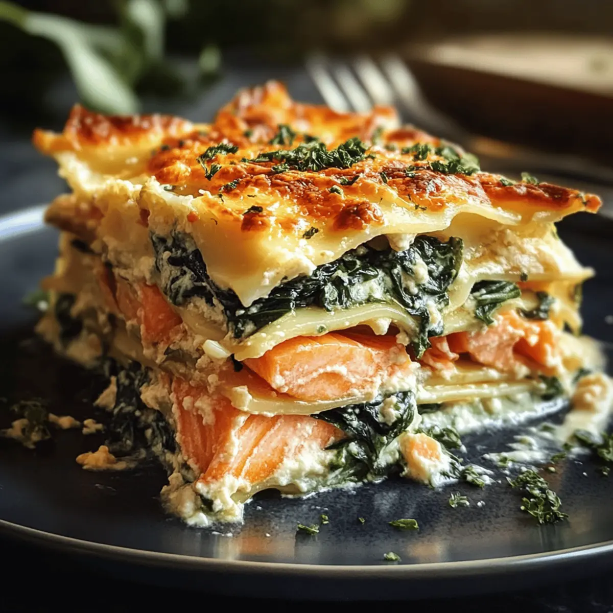 Genieße diese nahrhafte Spinat-Lachs-Lasagne, die gesunden Genuss mit zartem Lachs und frischem Spinat vereint.