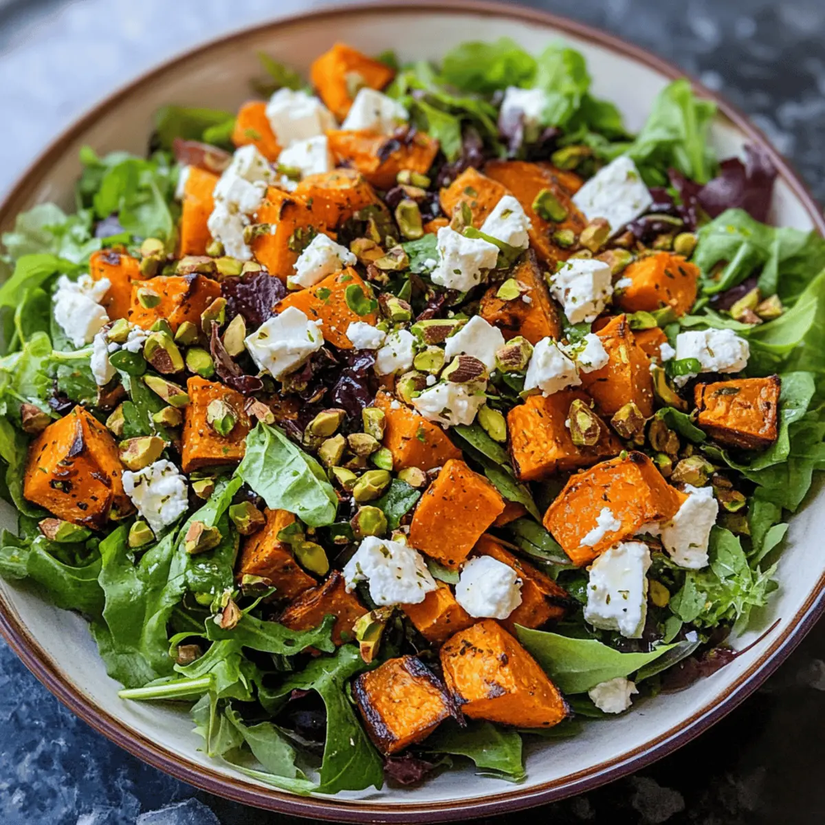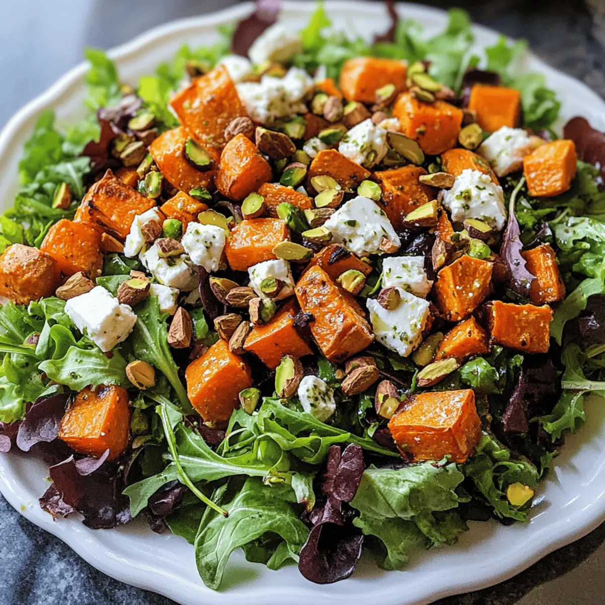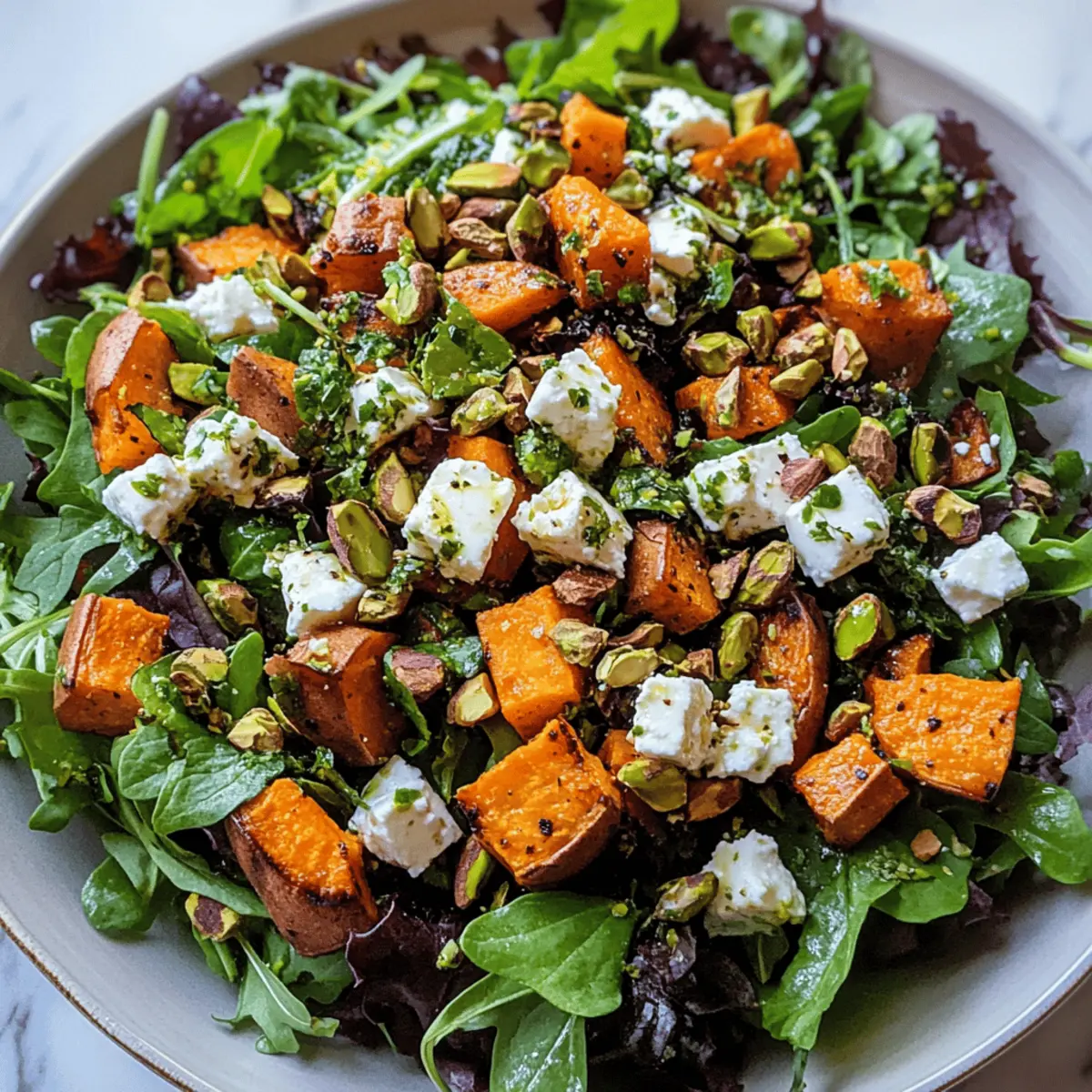Wenn der Herbst naht und die Blätter in lebhaften Farben erstrahlen, ist es an der Zeit, sich mit herzhaften Aromen und gesunden Gerichten zu umgeben. Mein Süßkartoffel Feta Salat vereint die Süße von gerösteten Süßkartoffeln mit der Cremigkeit von Feta und dem Knusprigen von Pistazien – eine Kombination, die nicht nur köstlich ist, sondern auch ideal für festliche Zusammenkünfte und gesunde Mahlzeiten unter der Woche. Dieses Rezept bietet nicht nur eine schnelle Zubereitung, sondern ist auch glutenfrei und vollgepackt mit Nährstoffen. Stelle dir vor, wie du diesen farbenfrohen Salat auf den Tisch zauberst – er wird mit Sicherheit zum Star deines nächsten Festes! Bist du bereit, deinem Kühlschrank ein wenig herbstliche Frische zu verleihen? Warum ist dieser Salat ein Must-Try? Vielseitigkeit: Du kannst ganz einfach Zutaten anpassen, um deinen persönlichen Geschmack zu treffen, sei es mit verschiedenen Nüssen oder Käsesorten. Gesund und Lecker: Die Mischung aus Süßkartoffeln und Feta sorgt für einen nahrhaften Genuss, der nicht nur gesund, sondern auch sättigend ist. Schnelle Zubereitung: In wenigen Schritten hast du einen köstlichen Salat, der perfekt für wöchentliche Mahlzeiten oder besondere Anlässe ist. Festlich und Farbenfroh: Die lebendigen Farben und Texturen dieses Salats machen ihn zu einer Augenweide auf jedem Tisch – ideal für die nächste Feier. Alleinstehend oder Begleitung: Dieser Salat kann sowohl als Hauptgericht oder als Beilage zu leckeren Gerichten wie Honig Feta Hühnchen serviert werden. Entdecke die Kombinationsmöglichkeiten und genieße! Süßkartoffel Feta Salat Zutaten • Süßkartoffel Feta Salat ist eine gesunde und glutenfreie Wahl! Für den Salat Gemischte Blattsalate – bilden die Basis des Salats und können durch Rucola oder Spinat ersetzt werden. Süßkartoffeln – sorgen für Süße und Substanz; können durch Butternusskürbis ersetzt werden. Feta-Käse – bringt Cremigkeit und einen leicht salzigen Geschmack; kann durch Blauschimmelkäse oder Ziegenkäse ersetzt oder für eine milchfreie Variante weggelassen werden. Pistazien – bieten einen knackigen Biss; können durch andere Nüsse wie Mandeln oder Pekannüsse ersetzt oder weggelassen werden. Für das Dressing Limettensaft – sorgt für die frische Note; verwende frische Limetten für den besten Geschmack. Natives Olivenöl extra – dient als Basis für das Dressing; kann durch ein neutrales Öl ersetzt werden, wenn gewünscht. Honig – bringt Süße ins Dressing; für eine vegane Option kann Ahornsirup verwendet werden. Dijon-Senf – verleiht dem Dressing Tiefe; optional, aber für die Würze empfehlenswert. Salz und Pfeffer – nach Geschmack hinzufügen, um die Aromen zu verstärken. Schritt-für-Schritt-Anleitung für Süßkartoffel Feta Salat mit Limetten-Dressing Schritt 1: Ofen vorheizen Heize deinen Ofen auf 200°C vor. Während der Ofen auf Temperatur kommt, bereite deine Zutaten vor. Du benötigst ein Backblech, um die Süßkartoffeln gleichmäßig zu rösten. Es ist wichtig, die richtigen Temperaturen einzuhalten, um perfekten Geschmack und Konsistenz zu erreichen. Schritt 2: Süßkartoffeln vorbereiten Schneide die Süßkartoffeln in gleichmäßige Würfel und gebe sie in eine Schüssel. Beträufle sie mit nativem Olivenöl, salze und pfeffere sie gut. Verteile die gewürzten Süßkartoffeln gleichmäßig auf dem Backblech und röste sie 20-25 Minuten lang, bis sie weich und leicht karamellisiert sind. Achte darauf, dass sie eine goldene Farbe annehmen. Schritt 3: Süßkartoffeln abkühlen lassen Nach dem Rösten nimm das Blech aus dem Ofen und lasse die Süßkartoffeln einige Minuten abkühlen. Dadurch behält der Süßkartoffel Feta Salat seine knackige Frische und die Süßkartoffeln werden nicht zu matschig, wenn du sie mit dem restlichen Salat vermischst. Schritt 4: Dressing zubereiten In einem Glas mische den Limettensaft, das nativem Olivenöl, den Honig, sowie Dijon-Senf, Salz und Pfeffer. Schraube den Deckel auf und schüttle das Glas kräftig, damit sich die Zutaten gut verbinden. Dein Dressing wird frisch und köstlich sein und wird im Süßkartoffel Feta Salat die perfekte Würze verleihen. Schritt 5: Salat zusammenstellen In einer großen Schüssel schichte die gemischten Blattsalate, gefolgt von den abgekühlten gerösteten Süßkartoffeln. Streue den Feta-Käse und die Pistazien gleichmäßig über deinen Salat. Diese Zutaten sorgen für ein harmonisches Zusammenspiel aus Geschmack und Texturen in deinem Süßkartoffel Feta Salat. Schritt 6: Mit Dressing servieren Gieße das vorbereitete Limetten-Dressing über den Salat kurz bevor du ihn servierst, um die Frische der Zutaten zu bewahren. Vermische alles behutsam, sodass die Aromen gut durchzogen sind. Je nach Geschmack kannst du noch mit zusätzlichem Salz und Pfeffer abschmecken. Jetzt ist dein Süßkartoffel Feta Salat bereit, genossen zu werden! Aufbewahrungstipps für Süßkartoffel Feta Salat Kühlschrank: Lagere übrig gebliebenen Süßkartoffel Feta Salat in einem luftdichten Behälter im Kühlschrank für bis zu 3 Tage. So bleibt er frisch und knackig. Dressing getrennt halten: Bewahre das Dressing separat auf, um die Frische der Blattsalate zu bewahren. Mische das Dressing erst kurz vor dem Servieren, damit die Texturen erhalten bleiben. Gefrieroption: Der Salat ist nicht ideal zum Einfrieren, da die Textur der gemischten Blattsalate und Feta nach dem Auftauen leidet. Am besten frisch genießen! Wiedererwärmung: Wenn du Reste aufwärmen möchtest, erhitze nur die gerösteten Süßkartoffeln in der Mikrowelle oder im Ofen, nicht den gesamten Salat, um die Frische nicht zu verlieren. Expertentipps für Süßkartoffel Feta Salat Gleichmäßig schneiden: Achte darauf, die Süßkartoffeln in gleich große Würfel zu schneiden. So garen sie gleichmäßig und bekommen die perfekte Karamellisierung. Vorbereitung ist wichtig: Lass die gerösteten Süßkartoffeln etwas abkühlen, b