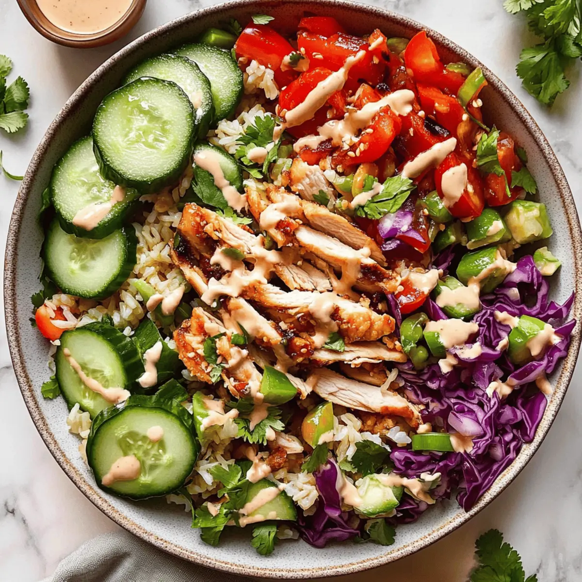 • Vegetarisch: Ersetze das Rotisserie-Hühnchen durch gegrillten Tofu für eine köstliche vegetarische Variante. Der Tofu lässt sich ebenso wunderbar mit Teriyaki-Sauce marinieren.