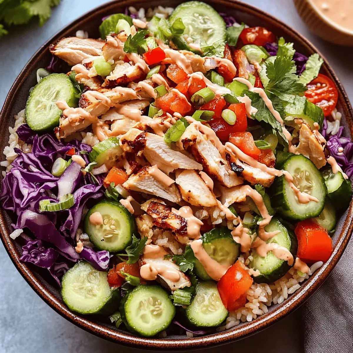 Bereite deinen Teriyaki-Hühnchen-Crispy-Reis-Salat im Voraus vor, um wertvolle Zeit an hektischen Wochentagen zu sparen! Du kannst den gekochten Reis in einer luftdichten Box bis zu 24 Stunden vor dem Servieren im Kühlschrank aufbewahren, damit er die Aromen von Sesamöl und Teriyaki-Sauce absorbiert. Das geschnittene Gemüse, wie Gurken und roter Kohl, bleibt in einem separaten Behälter ebenfalls bis zu 3 Tage frisch. Wenn du bereit bist zu servieren, mische einfach den knusprigen Reis mit dem gewürzten Hühnchen und dem frischen Gemüse. Vergiss nicht, das Dressing erst kurz vor dem Servieren hinzuzufügen, um die Knackigkeit des Salats zu bewahren – so bleibt dein Teriyaki-Hühnchen-Crispy-Reis-Salat ebenso köstlich wie frisch!