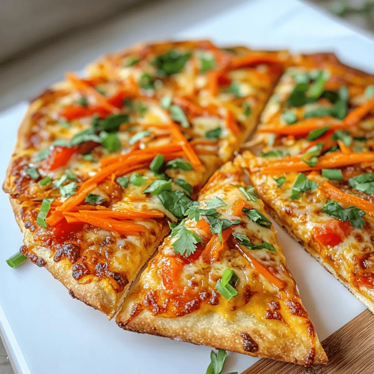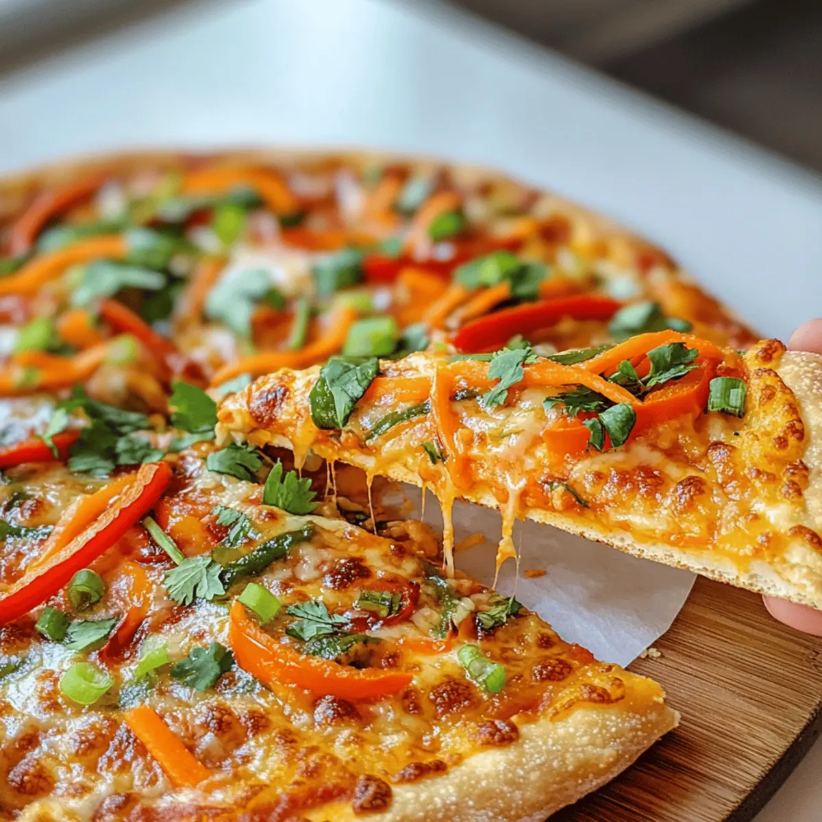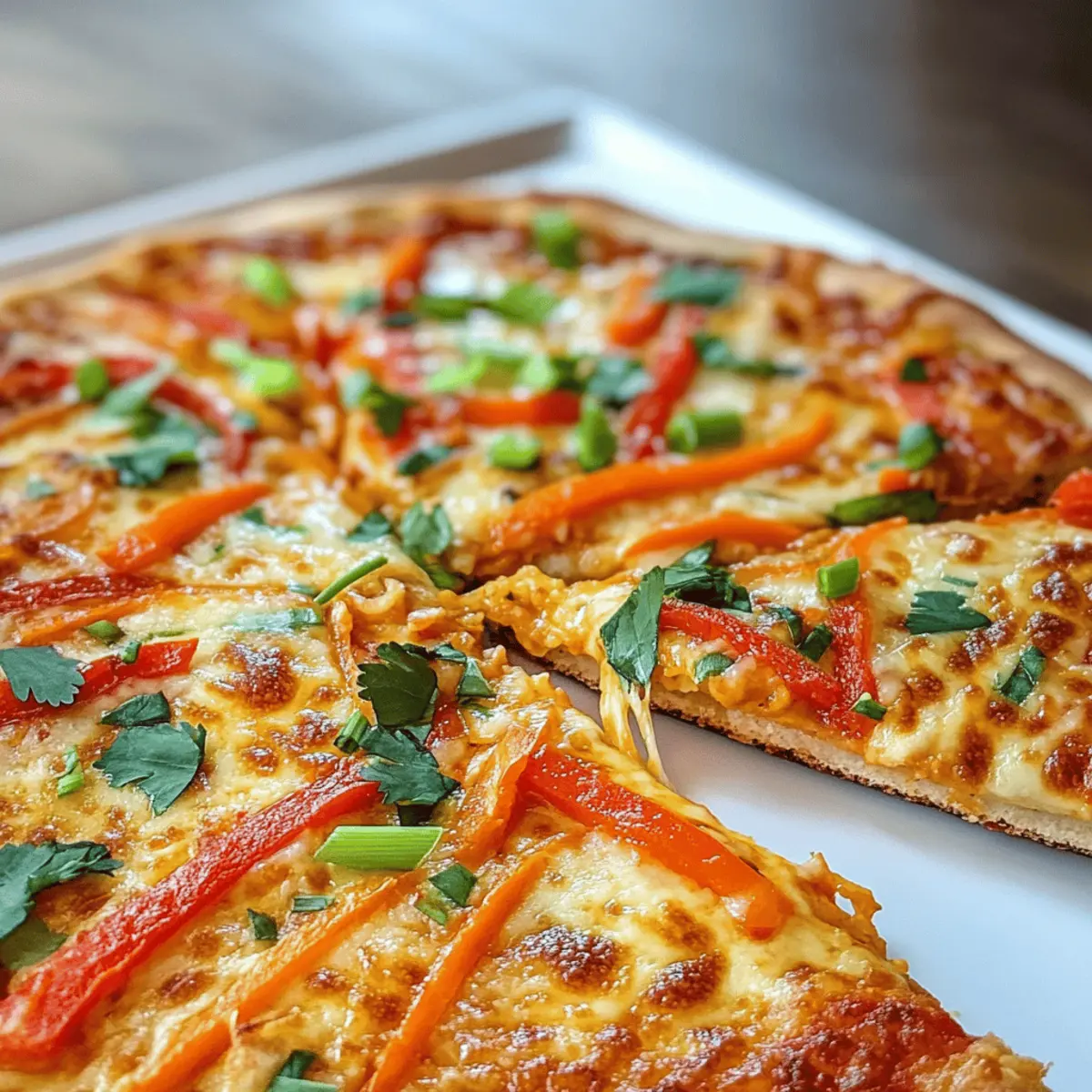 Stell dir vor, du bist in einer kleinen Gasse in Bangkok, umgeben von einem verlockenden Duft frisch zubereiteter thailändischer Speisen. Genau dieses Gefühl bringe ich mit meiner Thai-Curry-Pizza direkt zu dir nach Hause! Diese köstliche Fusion kombiniert den cremigen Geschmack von gelbem Curry mit dem klassischen Pizzagenuss und sorgt so für ein unvergleichliches Geschmackserlebnis. Mit einer knusprigen Kruste, frischen Gemüse und zart schmelzendem Mozzarella ist diese Thai-Curry-Pizza nicht nur schnell zubereitet, sondern auch ein absoluter Hit für jedes Dinner oder Pizzaabend. Willst du wissen, wie du diese köstliche Kombination ganz einfach selbst zubereiten kannst? Warum wirst du diese Thai-Curry-Pizza lieben? Einzigartige Fusion: Diese Thai-Curry-Pizza kombiniert das Beste aus zwei Küchen und verwandelt vertraute Aromen in ein aufregendes neues Gericht. Einfache Zubereitung: Die Schritte sind unkompliziert, sodass auch weniger erfahrene Köche mit Leichtigkeit mitmachen können. Gesunde Zutaten: Frisches Gemüse und cremige Kokosmilch sorgen nicht nur für reichhaltigen Geschmack, sondern auch für eine nahrhafte Mahlzeit. Vielseitig anpassbar: Ob du es gerne scharf magst oder milde Aromen bevorzugst, du kannst die Zutaten ganz nach deinem Geschmack verändern. Perfekt für jeden Anlass: Diese Pizza eignet sich hervorragend für ein entspanntes Abendessen mit Freunden oder als schmackhafte Überraschung bei deiner nächsten Pizza-Nacht! Thai-Curry-Pizza Zutaten Hinweis: Diese Thai-Curry-Pizza ist nicht nur lecker, sondern auch einfach anzupassen! Für die Soße Kokosmilch – sorgt für eine cremige Basis; kann durch Mandelmilch ersetzt werden, wenn du eine leichtere Variante möchtest. Gelbe Thai-Curry-Paste – fügt Tiefe und Würze hinzu; passe die Menge an, um den gewünschten Schärfegrad zu erreichen. Für den Boden Artisan-Pizzateig (oder 11-Zoll-Pizzaboden) – dient als Struktur; kaufe einen fertigen Boden, um Zeit zu sparen. Für die Beläge Rote Paprika – bringt Süße und Knusprigkeit; andere Farben wie Gelb oder Orange sind ebenfalls lecker. Karotten – sorgen für einen Hauch von Süße und lebendige Farbe; du kannst auch geraspelte Karotten verwenden. Rote Zwiebel – verleiht einen würzigen Geschmack; gelbe oder weiße Zwiebeln können alternativ verwendet werden. Mozzarella-Käse – verbindet die Beläge und sorgt für Cremigkeit; es gibt auch milchfreien Käse für eine vegane Option. Koriander – frischer Garniertipp; wenn dir Koriander nicht gefällt, versuche es mit Basilikum. Frühlingszwiebeln – fügt einen milden Zwiebelgeschmack als Garnitur hinzu. Schritt-für-Schritt-Anleitung für Thai-Curry-Pizza Step 1: Soße zubereiten In einer kleinen Schüssel die ¼ Tasse Kokosmilch mit 1 Esslöffel gelber Thai-Curry-Paste vermengen, bis eine glatte Mischung entsteht. Stelle die Schüssel beiseite und achte darauf, dass die Soße gleichmäßig und cremig aussieht, um einen köstlichen Geschmack auf deiner Thai-Curry-Pizza zu gewährleisten. Step 2: Teig vorbereiten Heize deinen Ofen auf 245 °C vor. Rolle den Pizzateig auf einer bemehlten Arbeitsfläche aus, bis er einen Durchmesser von etwa 28 cm erreicht. Achte darauf, dass der Teig gleichmäßig dünn ausgerollt ist, um eine knusprige Kruste für deine Thai-Curry-Pizza zu erhalten. Step 3: Pizza zusammenstellen Verteile die vorbereitete Currysoße gleichmäßig über den Pizzateig. Beginne dann mit einer Schicht aus roten Paprikascheiben, gefolgt von Karottenstreifen und roten Zwiebelringen. Belege die Pizza abschließend mit 1,5 Tassen geriebenem Mozzarella und achte darauf, dass die Beläge gleichmäßig verteilt sind. Step 4: Backen Schiebe die Pizza in den vorgeheizten Ofen und backe sie für 9-11 Minuten, bis der Rand leicht goldbraun ist und der Käse blubbert. Beobachte die Pizza während des Backens, um sicherzustellen, dass sie nicht zu dunkel wird und die perfekte Konsistenz erreicht. Step 5: Abkühlen und Servieren Entferne die Pizza vorsichtig aus dem Ofen und lasse sie einige Minuten abkühlen, bevor du sie in Stücke schneidest. Garniere die warme Thai-Curry-Pizza mit frischem Koriander und geschnittenen Frühlingszwiebeln, um dem Gericht eine frische Note zu verleihen. Bereite deine Thai-Curry-Pizza im Voraus vor! Die Thai-Curry-Pizza ist perfekt für alle, die es eilig haben, denn einige Schritte kannst du bis zu 24 Stunden im Voraus erledigen. Bereite die Currysoße (¼ Tasse Kokosmilch und 1 Esslöffel gelbe Thai-Curry-Paste) vor und bewahre sie in einem luftdichten Behälter im Kühlschrank auf, um den Geschmack frisch zu halten. Auch der Pizzateig kann bereits am Vortag ausgerollt und in Folie gewickelt werden, um seine Qualität zu bewahren. Für die Beläge wie rote Paprika und Karotten ist es empfehlenswert, diese ebenfalls vorher zu schneiden und in einem verschlossenen Behälter kühl zu lagern. Wenn du bereit bist, deine Thai-Curry-Pizza zuzubereiten, heize den Ofen vor und belege den fertigen Teig mit der Currysoße und den vorbereiteten Zutaten, um dein köstliches Gericht in weniger als 15 Minuten zu backen! So sparst du wertvolle Zeit an einem hektischen Tag. Variationen der Thai-Curry-Pizza Entdecke köstliche Möglichkeiten, deine Thai-Curry-Pizza nach deinem Geschmack anzupassen und neuen Schwung in das Gericht zu bringen. Gemüsevarianten: Tausche die roten Paprika gegen Spinat oder Zucchini aus. Diese Alternativen sorgen für eine frische und lebendige Note. Käsewechsel: Probiere Feta-Käse anstelle von Mozzarella, um einen salzigen Kontrast zur süßen Currysoße zu kreieren. Würzige Note: Erhöhe die Schärfe, indem du zusätzlich frische Chili oder einer Prise Cayennepfeffer hinzufügst. So kannst du das Geschmackserlebnis intensivieren! Glutenfreie Option: Nutze glutenfreien Pizzateig oder Blumenkohlboden, um das Gericht auch für Allergiker zugänglich zu machen. Nussige Vielfalt: Füge geröstete Cashewkerne als Topping hinzu, um eine knusprige Textur 