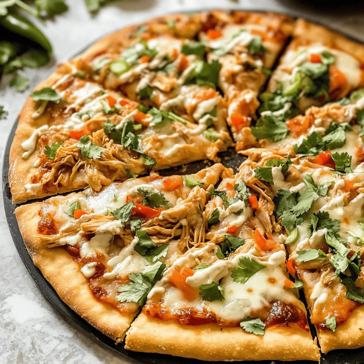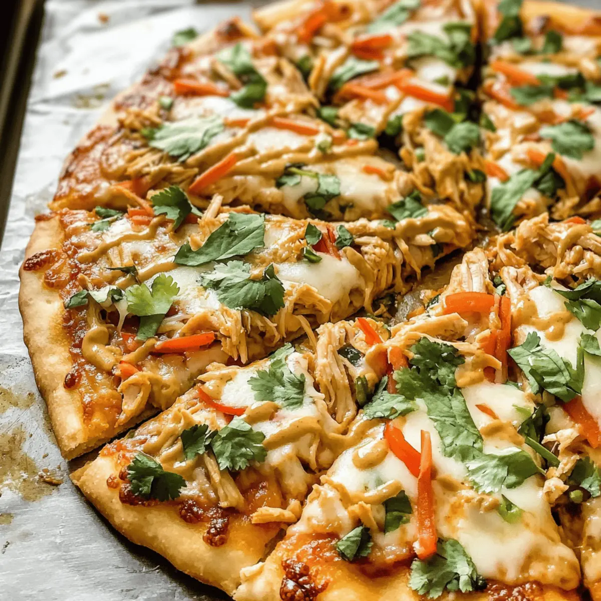 Die Kombination von Pizza und thailändischen Aromen klingt vielleicht ungewöhnlich, doch sie birgt eine wahre Geschmacksexplosion! Diese Thai Hühnchen Pizza mit cremiger Erdnusssauce verbindet die Knusprigkeit einer traditionellen Pizza mit den aufregenden, würzigen Noten der thailändischen Küche. In nur wenigen Schritten zubereitet, ist sie nicht nur ein schneller Genuss für hektische Wochentage, sondern auch vollgepackt mit hochwertigem Eiweiß. Ideal für die ganze Familie, macht diese Spezialität auch beim nächsten Treffen Eindruck. Bist du bereit, dein Pizza-Spiel auf die nächste Stufe zu heben? Lass uns in die aufregende Welt der Thai Hühnchen Pizza eintauchen! Warum wird diese Pizza dein Favorit? Zweifellos: Die Kombination aus knusprigem Pizzaboden und der cremigen Erdnusssauce ist schlichtweg unwiderstehlich. Schnelle Zubereitung: In nur 30 Minuten hast du ein köstliches Gericht, das perfekt für hektische Wochenabende ist. Vielseitig: Egal, ob du Gemüse hinzuzufügen oder die Proteinquelle zu variieren möchtest, Anpassungsmöglichkeiten gibt es zuhauf. Gesund und nahrhaft: Mit hochwertigem Eiweiß hält dich diese Pizza lange satt und glücklich. Lass dich von dieser aufregenden Fusion inspirieren und entdecke auch unsere anderen einfachen Rezepte! Zutaten für Thai Hühnchen Pizza • Mit den richtigen Zutaten wird deine Thai Hühnchen Pizza zu einem wahren Genuss! Für den Pizzaboden Großer, dünn ausgerollter Pizzateig – Die Basis der Pizza sorgt für die nötige Struktur; nutze für Bequemlichkeit einen gekauften Teig. Für die Erdnusssauce Erdnussbutter (3 Esslöffel) – Verleiht Cremigkeit und einen umami Geschmack; du kannst auch Mandel- oder Cashewbutter verwenden. Reisessig (2 Teelöffel) – Fügt Säure hinzu, um die Aromen auszubalancieren; kann im Notfall mit Zitronensaft ersetzt werden. Niedrig-natürliche Sojasauce (2 Teelöffel) – Vertieft den Geschmack; verwende Tamari für eine glutenfreie Option. Olivenöl (1 Teelöffel) – Sorgt für Reichtum in der Erdnusssauce; neutrales Öl kann ersetzt werden. Zerdrückte rote Chiliflocken (1/2 Teelöffel) – Fügt der Sauce Schärfe hinzu; passe die Menge nach Geschmack an oder lasse sie für einen milderen Geschmack weg. Frisch geriebener Ingwer (1 Esslöffel) – Bringt eine frische, würzige Note; ersetze ihn durch gemahlenen Ingwer, jedoch in geringerer Menge. Honig (2 Teelöffel) – Fügt der Sauce Süße hinzu; verwende Agavensirup für eine vegane Option. Sesamöl (1/2 Teelöffel) – Gibt einen nussigen Geschmack; kann bei Bedarf durch Pflanzenöl ersetzt werden. Wasser (2-3 Esslöffel) – Verdünnt die Erdnusssauce auf die gewünschte Konsistenz. Für den Belag Gekochtes, zerkleinertes Hühnchen (1 gehäufte Tasse) – Die Hauptproteinquelle; nutze für Bequemlichkeit Rotisserie-Hühnchen. Chopierte rote oder grüne Zwiebel (1/4 Tasse) – Sorgt für eine frische, knackige Textur; beide Sorten können beliebig verwendet werden. Geriebene Karotte (3 Esslöffel) – Fügt subtile Süße und Knackigkeit hinzu; kann durch andere Gemüse wie Paprika ersetzt werden. Frisch geriebener Mozzarella-Käse (1 1/4 Tassen) – Schmilzt zu einem köstlichen Belag; verwende eine milchfreie Käsealternative für eine vegane Pizza. Frisch gehackter Koriander (1/4 Tasse) – Für die Garnierung sorgt er für Frische; kannst ihn weglassen, wenn du magst. Diese köstlichen Zutaten machen deine Thai Hühnchen Pizza zu einem einzigartigen Erlebnis! Schritt-für-Schritt-Anleitung für Thai Hühnchen Pizza Step 1: Ofen vorheizen Heize deinen Ofen auf 245°C (475°F) vor. Dies ist wichtig, um eine perfekt knusprige Kruste für deine Thai Hühnchen Pizza zu erhalten. Während der Ofen aufheizt, kannst du den Pizzateig auf einer bemehlten Arbeitsfläche dünn ausrollen. Step 2: Erdnusssauce zubereiten Vermische in einer Schüssel 3 Esslöffel Erdnussbutter, 2 Teelöffel Reisessig, 2 Teelöffel Sojasauce, 1 Teelöffel Olivenöl, 1/2 Teelöffel zerdrückte rote Chiliflocken, 1 Esslöffel frisch geriebenen Ingwer, 2 Teelöffel Honig, 1/2 Teelöffel Sesamöl und 2-3 Esslöffel Wasser. Rühre gut um, bis die Sauce schön cremig und glatt ist. Diese Sauce wird ein Highlight deiner Thai Hühnchen Pizza sein. Step 3: Pizza belegen Verteile die vorbereitete Erdnusssauce gleichmäßig über den ausgerollten Pizzateig. Achte darauf, dass die Sauce bis zu den Rändern reicht, um jedem Bissen den köstlichen Geschmack zu verleihen. Dies wird die Basis für deinen einzigartigen Belag. Step 4: Belag hinzufügen Streue 1 gehäufte Tasse zerkleinertes Hühnchen über die Erdnusssauce und füge 1/4 Tasse gehackte Zwiebeln sowie 3 Esslöffel geriebene Karotten hinzu. Decke alles mit 1 1/4 Tassen frisch geriebenem Mozzarella-Käse ab. Achte darauf, dass der Käse gleichmäßig verteilt ist, damit er beim Backen gleichmäßig schmelzen kann. Step 5: Backen Platziere die belegte Pizza auf einem Pizzablech oder einem vorgeheizten Backstein im Ofen. Backe die Pizza für 7 bis 12 Minuten, bis der Rand goldbraun ist und der Käse sprudelt und leicht bräunlich wird. Dies ist der perfekte Zeitpunkt, um die herrlichen Aromen deiner Thai Hühnchen Pizza freizusetzen. Step 6: Garnieren und servieren Nimm die Pizza vorsichtig aus dem Ofen und lasse sie kurz abkühlen. Garniere die heiße Pizza mit 1/4 Tasse frisch gehacktem Koriander, um zusätzlichen Geschmack und eine frische Note hinzuzufügen. Schneide die Pizza in Stücke und serviere sie warm für ein unvergessliches Geschmackserlebnis. Zeit sparen mit der Vorbereitung der Thai Hühnchen Pizza Diese Thai Hühnchen Pizza eignet sich hervorragend für die Vorbereitung im Voraus, um dir Zeit an hektischen Abenden zu sparen! Du kannst die Erdnusssauce bis zu 3 Tage im Voraus zubereiten und im Kühlschrank aufbewahren, um die Aromen zu erhalten (verhindert das Verklumpen der Erdnussbutter). Auch das Hühnchen kann bereits gekocht und zerkleinert werden, sodass es schnell auf der Pizza verteilt 