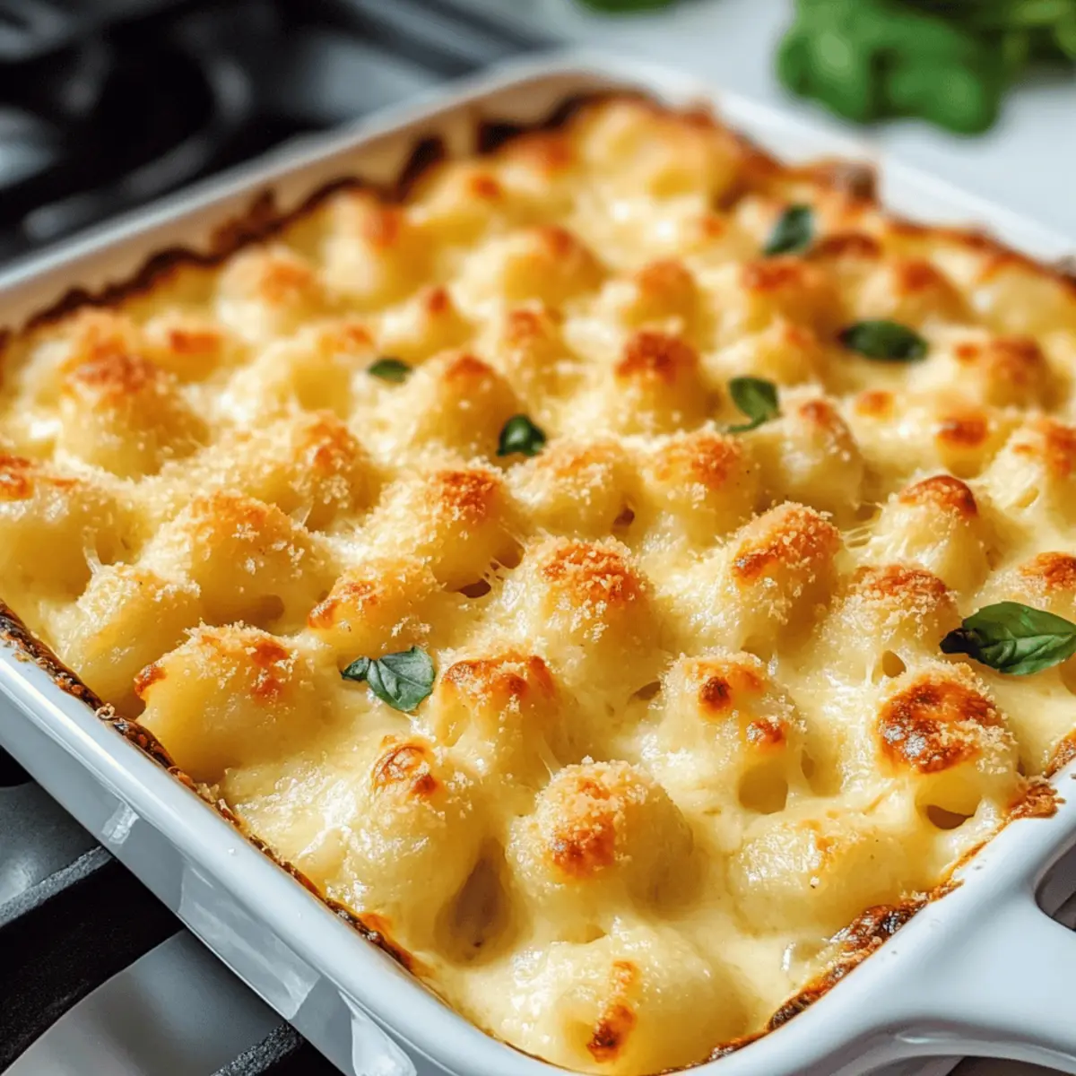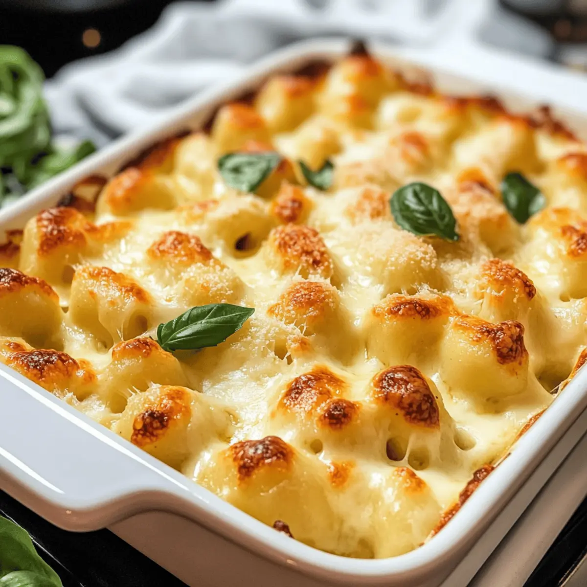 Während ich an diesem kalten Abend in der Küche stehe, waftet der köstliche Duft von geschmolzenem Käse durch den Raum und sorgt für sofortige Gemütlichkeit. Wenn ihr wie ich die klassische Mac and Cheese liebt, dann wird euch dieses Rezept für Überbackene Gnocchi mit Käse umso mehr begeistern! Die zarten Gnocchi treffen auf eine cremige Käsesauce und ergeben ein einfaches, aber doch raffiniertes Komfortessen, das die ganze Familie ans Spielbrett ruft. Die Zubereitung ist nicht nur schnell und unkompliziert, sondern auch ein wahrer Stimmungsmacher an jedem Tisch. Seid ihr bereit, eure nächste Mahlzeit in eine herzhafte Umarmung zu verwandeln? Warum sind Überbackene Gnocchi mit Käse einzigartig? Verwöhnkanone: Dieses Rezept kombiniert die zarte Textur von Gnocchi mit einer cremigen Käsesauce, die einfach nur verführerisch ist. Einfachheit pur: Die Zubereitung erfordert nur wenige Schritte und Grundkenntnisse in der Küche, was es perfekt für alle macht. Familiärer Genuss: Egal, ob für ein geselliges Abendessen oder ein schnelles Mittagessen, dieses Gericht wird Jung und Alt begeistern. Vielseitig: Möchtet ihr den Geschmack variieren? Experimentiert mit verschiedenen Käsesorten oder fügt Gemüse und Kräuter hinzu! Schneller Komfort: Ideal für kalte Abende oder wenn ihr einfach nur etwas Warmes und Herzhaftes sucht. Überbackene Gnocchi mit Käse Zutaten Hinweis: Entwickelt für das ultimative Komfortessen! Für die Gnocchi • Gnocchi – Die perfekte Basis mit einem zarten Biss; wählt Kartoffelgnocchi für den besten Geschmack. Für die Käsesauce • Butter – Fügt der Sauce reichhaltigen Geschmack hinzu. • Zwiebel oder Knoblauch, fein gehackt – Gibt der Käsesauce eine geschmackliche Tiefe; kann auch durch Zwiebelpulver ersetzt werden. • Allzweckmehl – Verdickt die Käsesauce und sorgt für eine cremige Konsistenz. • Milch – Der Grundbaustein der Sauce; verleiht eine samtige Textur, wobei Vollmilch die beste Wahl ist. • Dijon-Senf – Für eine feine, würzige Note in der Sauce; kann weggelassen werden, wenn es milder sein soll. • Gruyère-Käse – Bietet einen nussigen Geschmack und schmilzt hervorragend; kann durch Emmental ersetzt werden. • Fontina-Käse – Sorgt für zusätzliche Cremigkeit; kann durch Gruyère oder Mozzarella ersetzt werden. • Salz & Pfeffer – Unverzichtbar zum Würzen nach Geschmack. Für das Topping • Parmigiano-Reggiano – Für eine goldene Kruste und intensiven Geschmack; jede harte Käsesorte kann als Ersatz dienen. • Frisches Basilikum – Für Garnierung und einen frischen Farbklecks; optional, aber verstärkt das Aroma. Schritt-für-Schritt-Anleitung für Überbackene Gnocchi mit Käse Step 1: Ofen vorheizen Heize deinen Ofen auf 190 °C vor, damit er die ideale Temperatur erreicht, um die Überbackenen Gnocchi mit Käse knusprig zu machen. Das Vorheizen ist ein wichtiger Schritt, denn so erhält das Gericht eine goldene Kruste und die Käsesauce wird gleichmäßig erhitzt. Step 2: Gnocchi kochen Bringe einen großen Topf mit Wasser zum Kochen und füge die Gnocchi hinzu. Koche sie für etwa 2–3 Minuten, bis sie an die Oberfläche schwimmen. Dies signalisiert, dass sie fertig sind. Gieße die Gnocchi ab und stelle sie in einer gefetteten Auflaufform beiseite, während du die Käsesauce zubereitest. Step 3: Butter und Knoblauch anbraten Nimm einen mittelgroßen Topf und erhitze bei mittlerer Hitze die Butter. Sobald sie geschmolzen ist, füge den fein gehackten Knoblauch hinzu und brate ihn für etwa 30 Sekunden an. Pass auf, dass der Knoblauch nicht verbrennt, da er sonst bitter wird und die gesamte Käsesauce beeinträchtigen könnte. Step 4: Roux herstellen Streue das Allzweckmehl über die Butter-Knoblauch-Mischung und whisk es gut um. Lass das Roux für 1-2 Minuten leicht köcheln, während du es regelmäßig umrührst. Es sollte eine goldene Farbe annehmen, was der Käsesauce eine schön cremige Konsistenz verleihen wird. Step 5: Milch und Dijon-Senf hinzufügen Gieße langsam die Milch in den Topf und füge den Dijon-Senf hinzu. Rühre ständig mit einem Schneebesen, bis die Sauce 3-5 Minuten dick wird und anfängt zu blubbern. Achte darauf, keine Klumpen zu bilden, während sich die Zutaten vermengen. Step 6: Käsesorten einrühren Sobald die Sauce dickflüssig ist, reduziere die Hitze und füge langsam den Gruyère- und Fontina-Käse hinzu. Rühre weiter, bis der Käse vollständig geschmolzen und die Sauce glatt ist. Schmecke die Käsesauce mit Salz und Pfeffer ab, um die Aromen zu intensivieren. Step 7: Überbackene Gnocchi zusammenstellen Gieße die cremige Käsesauce gleichmäßig über die gekochten Gnocchi in der Auflaufform. Achte darauf, dass die Gnocchi vollständig mit der Sauce bedeckt sind. Streue dann den Parmigiano-Reggiano über die Topfschicht, um eine herrlich goldene Kruste beim Backen zu erzielen. Step 8: Backen Setze die Auflaufform in den vorgeheizten Ofen und backe die Überbackenen Gnocchi mit Käse für etwa 25 Minuten. Achte darauf, dass die Oberfläche goldbraun und leicht blubbernd ist, um den perfekten Käsegeschmack zu erleben. Step 9: Abkühlen und garnieren Nehme die Form aus dem Ofen und lasse das Gericht für etwa 5 Minuten abkühlen. Dadurch kann die Käsesauce etwas eindicken. Garniere die Überbackenen Gnocchi mit frischem Basilikum, um ein frisches Aroma und einen hübschen Farbtupfer zu erhalten, bevor du servierst. Variationen & Substitute für Überbackene Gnocchi mit Käse Lass deiner Kreativität freien Lauf und passe dieses köstliche Rezept ganz nach deinem Geschmack an! Dairy-Free: Ersetze die Milch und Käse durch pflanzliche Alternativen wie Mandelmilch und Cashewkäse für eine herzhafte vegane Option. Extra Gemüse: Füge Spinat oder geröstete Paprika hinzu, um dem Gericht mehr Farbe und Nährstoffe zu verleihen. Es sorgt für eine frische Note! Protein-Push: Integriere gebratenes Hähnchen oder Speck, um deine Gnocchi noch gehaltvoller zu mac