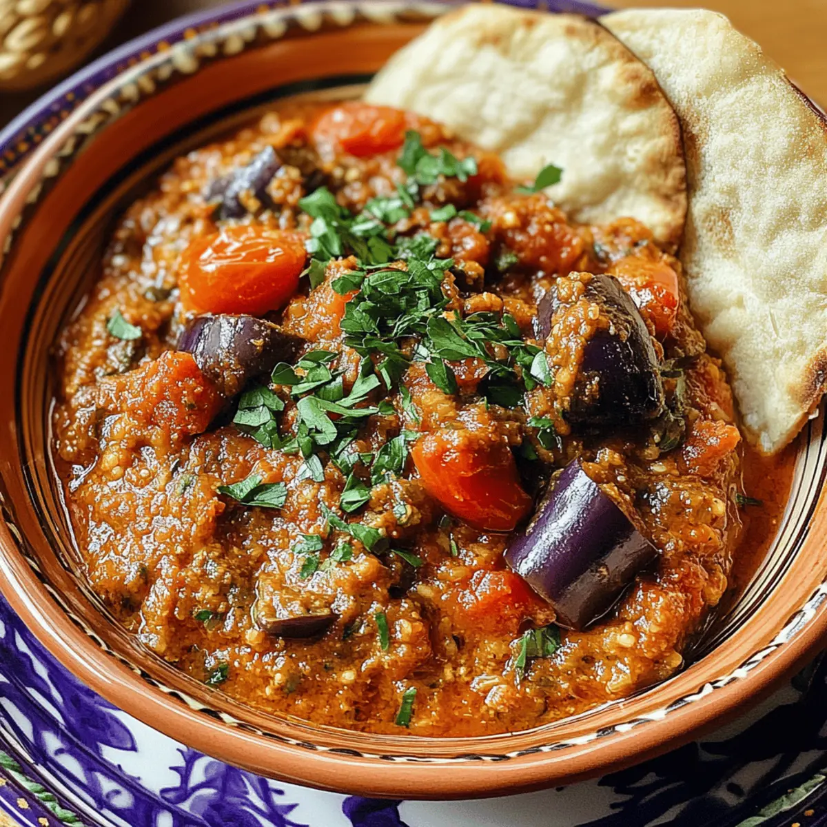 Zaalouk kann warm oder bei Zimmertemperatur serviert werden und eignet sich hervorragend für Fladenbrot oder Gemüsesticks.