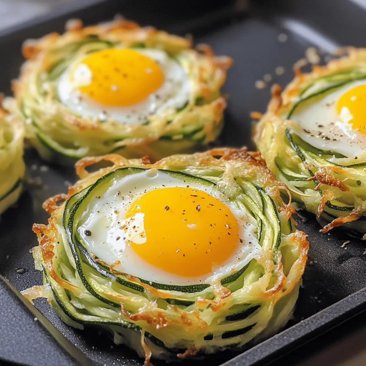 Als ich neulich in meinem Garten die frischen Zucchini erntete, fiel mir sofort ein Rezept ein, das ich unbedingt ausprobieren wollte: Zucchini-Ei-Nester. Diese low-carb Leckerei ist nicht nur ein Augenschmaus, sondern auch eine gesunde Wahl für alle, die sich nach leichten, sommerlichen Gerichten sehnen. Die Zucchini bieten eine wunderbare Basis, die perfekt mit dem cremigen Eigelb harmoniert. In nur wenigen Schritten bin ich bereit, ein Gericht zu zaubern, das sowohl geschmacklich als auch optisch überzeugt. Diese Zucchini-Ei-Nester sind nicht nur schnell zubereitet, sondern auch ein echter Hit bei Freunden und Familie – ideal für die nächste Grillparty oder als leichtes Mittagessen. Wer kann da widerstehen? Seid ihr bereit, in die Welt der einfachen und gesunden Küche einzutauchen? Warum werden Sie dieses Rezept lieben? Einfachheit: Die Zubereitung der Zucchini-Ei-Nester ist kinderleicht und benötigt nur wenige Zutaten. Perfekt für Kochanfänger oder gestresste Profis! Gesunde Köstlichkeit: Diese low-carb Option eignet sich ideal für Gesundheitsbewusste, die nicht auf Geschmack verzichten möchten. Vielseitigkeit: Mit verschiedenen Toppings wie Feta oder knusprigem Speck können die Nester ganz nach Ihrem Geschmack angepasst werden. Wunderbare Texturen: Die Kombination aus zartem Zucchini und cremigem Eigelb sorgt für ein unvergessliches Genusserlebnis. Schnelligkeit: Schnell im Ofen zubereitet, sind diese Nester eine ideale Wahl für ein leichtes Mittagessen oder einen schnellen Snack. Entdecken Sie auch unsere weiteren gesunden Rezepte wie leichte Sommersalate oder knusprige Gemüsepizza für noch mehr Abwechslung in Ihrer Küche! Zucchini-Ei-Nester Zutaten • Diese vielseitigen Zucchini-Ei-Nester sind nicht nur einfach zuzubereiten, sondern auch perfekt für jede Gelegenheit. Für die Nester Zucchini – Basiszutat, die Struktur und Geschmack bietet und eine leckere, low-carb Alternative darstellt. Substitution: Sie können auch gelbe Zucchini verwenden. Salz – Entzieht der Zucchini Feuchtigkeit und sorgt dafür, dass das Gericht nicht wässrig wird. Wesentlich für die Geschmacksentfaltung. Eier – Hauptquelle für Protein; binden die Mischung und formen die Nest-Struktur. Keine Substitutionen empfohlen für beste Ergebnisse. Zwiebelpulver – Verleiht dem Gericht eine tiefere Geschmacksdimension. Substitution: Frische Zwiebeln können verwendet werden, alterieren jedoch die Konsistenz. Knoblauchpulver – Verstärkt den herzhaften Geschmack und harmoniert perfekt mit der Zucchini. Frischer Knoblauch kann ebenfalls ersetzt werden. Pfeffer (nach Geschmack) – Fügt der Mischung eine pikante Note hinzu. Variante: Sie können schwarzen Pfeffer oder Chiliflocken für zusätzliche Schärfe verwenden. Optionales Topping Chiliflocken – Für eine extra Schärfe, die Ihrem Gericht den letzten Schliff verleiht. Ideal für Liebhaber von pikanten Aromen. Die Zubereitung dieser Zucchini-Ei-Nester wird sicherlich ein Highlight in Ihrer Küche sein! Schritt-für-Schritt-Anleitung für Zucchini-Ei-Nester Step 1: Ofen vorheizen Heizen Sie den Ofen auf 180°C vor. Diese Temperatur sorgt dafür, dass die Zucchini-Ei-Nester perfekt garen und eine angenehme goldene Farbe annehmen. Während der Ofen aufheizt, haben Sie Zeit, die Zucchini vorzubereiten. Step 2: Zucchini vorbereiten Waschen Sie die Zucchini gründlich und benutzen Sie einen Spiralschneider oder einen Gemüseschäler, um dünne Nudeln oder Streifen zu erzeugen. Vermengen Sie die Zucchini mit etwas Salz und lassen Sie sie für 10 Minuten stehen, damit überschüssige Feuchtigkeit entzogen wird. Dies ist entscheidend, um das Wässern der Nester zu vermeiden. Step 3: Zucchini entwässern Squeeze die Zucchini nach der Ruhezeit gut aus, um so viel Wasser wie möglich zu entfernen. Die ausgedrückte Flüssigkeit sollte verworfen werden, da sie sonst die Struktur der Zucchini-Ei-Nester beeinträchtigt. Nun sind die Zucchini bereit für die weitere Verarbeitung. Step 4: Eier trennen und mischen Trennen Sie die Eiweiße von den Eigelben. Geben Sie die Eiweiße in eine Schüssel und vermischen Sie sie mit den ausgedrückten Zucchini, Zwiebelpulver, Knoblauchpulver und Pfeffer. Diese Mischung wird die Grundlage für Ihre Zucchini-Ei-Nester und sorgt für einen herzhaften Geschmack. Step 5: Nester formen Legen Sie ein mit Backpapier ausgelegtes Backblech bereit oder verwenden Sie kleine Auflaufförmchen. Bilden Sie aus der Zucchini-Ei-Mischung 4 runde Nester und achten Sie darauf, die Mitte leicht auszuhöhlen, um Platz für die Eigelbe zu schaffen. Diese Form gibt den Zucchini-Ei-Nestern die typische Nest-Optik. Step 6: Eigelb hinzufügen Nehmen Sie die Eigelbe und setzen Sie vorsichtig je ein Eigelb in die Mitte jedes Nests. Seien Sie behutsam, damit die Eigelbe nicht zerbrechen. Diese geben den Nests ihre cremige Konsistenz, wenn sie nach dem Backen perfekt gar sind. Step 7: Backen Schieben Sie das Backblech mit den Zucchini-Ei-Nestern in den vorgeheizten Ofen und backen Sie sie etwa 15 Minuten lang. Behalten Sie die Nester im Auge, bis die Eiweiße fest und die Nester leicht goldbraun sind. Die richtige Garzeit sorgt dafür, dass die Nester eine angenehme Textur haben. Step 8: Servieren Nach dem Backen die Zucchini-Ei-Nester vorsichtig aus dem Ofen nehmen und optional mit Chiliflocken bestreuen, um einen scharfen Kick hinzuzufügen. Servieren Sie die Nester warm als leichtes Sommergericht oder als köstliche Beilage zu Ihren Lieblingsspeisen. Was passt zu Zucchini-Ei-Nester? Diese Zucchini-Ei-Nester sind nicht nur leicht und lecker, sondern eignen sich hervorragend, um ein ganzes Menü zu kreieren, das alle Sinne anspricht. Frischer Blattsalat: Leicht geworfener Salat mit einem Zitronen-Dressing bringt Frische und eine knackige Textur, die perfekt zu den zarten Nester harmoniert. Krosse Brotscheiben: Geröstetes Baguette oder Ciabatta ergänzt das Gericht mit einer herzhaften Knusprigkeit und kann wunderbar in die cremigen Eige