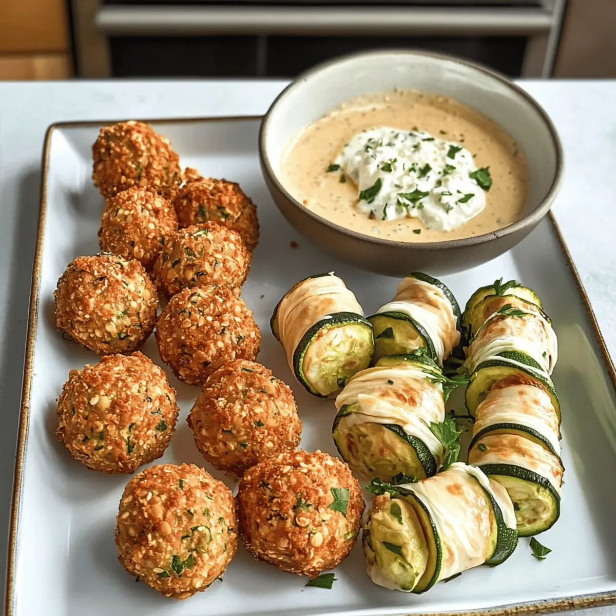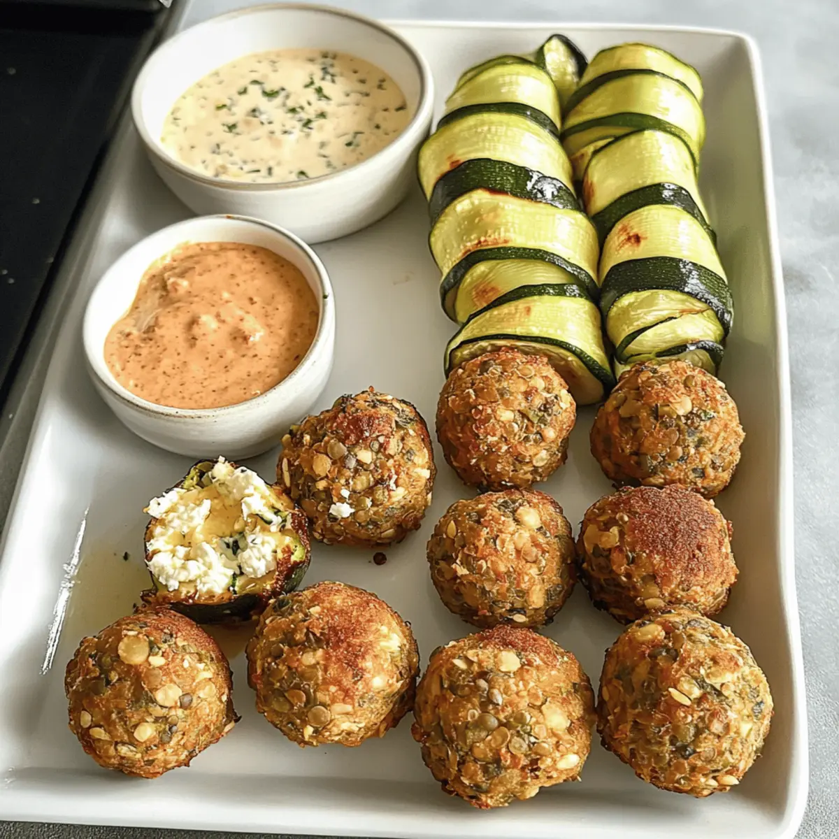 Wenn ich an gemütliche Abende in der Küche denke, kommen mir sofort die Worte „Zucchinipäckchen & Linsenschnitzel“ in den Sinn. Diese Kombination aus knusprigen Linsenbällchen und zarten Zucchini-Päckchen bietet nicht nur ein herrliches Geschmackserlebnis, sondern erzählt auch die Geschichte von liebevoll zubereitetem Essen. Mit einem schnellen und einfach zuzubereitenden Rezept wie diesem, das perfekt für Veganliebhaber ist, verwandle ich ein schnelles Abendessen in ein echtes Festmahl. Und das Beste daran? Diese Leckerei ist nicht nur ein absoluter Publikumsliebling, sondern auch vielseitig anpassbar, je nachdem, was der Kühlschrank gerade hergibt. Bereit, in eine köstliche Welt der Aromen einzutauchen? Lassen Sie uns gemeinsam die Zubereitung beginnen! Warum sind Zucchinipäckchen so beliebt? Einzigartiger Genuss: Diese Zucchinipäckchen sind nicht nur hübsch anzusehen, sondern bieten auch ein geschmackliches Erlebnis, das frisch und aromatisch ist. Schnell zubereitet: In der Airfryer zubereitet, sind sie in kürzester Zeit fertig. Perfekt für stressige Wochentage! Vielseitigkeit: Sie können die Füllung nach Lust und Laune anpassen – probieren Sie es mit Gefüllte Paprika Mit oder veganen Alternativen. Gesund und nahrhaft: Zucchini ist kalorienarm, reich an Vitaminen und perfekt für eine ausgewogene Ernährung. Gemeinsames Erlebnis: Ein Gericht, das sich wunderbar zum Teilen eignet und Gäste garantiert begeistert. Diese Zucchinipäckchen & Linsenschnitzel mit dem Frischkäse-Asia-Dip sind nicht nur lecker, sondern fördern auch das Miteinander beim Essen! Zucchinipäckchen & Linsenschnitzel Zutaten • Für die Zubereitung Ihres köstlichen Zucchinipäckchen & Linsenschnitzel mit Frischkäse-Asia-Dip benötigen Sie folgende Zutaten: Für die Linsenbällchen Schupfnudeln (500 g) – Die Basis für die Linsenbällchen, die Struktur geben. Geriebener Käse oder Käseersatz (150 g) – Fügt Cremigkeit und Geschmack hinzu; vegane Alternativen sind ebenfalls möglich. Salz (½ TL) – Hebt den Geschmack der Zutaten hervor. Braune Linsen (80 g) – Eine großartige Proteinquelle; für einen schnelleren Zugang können auch frische Linsen verwendet werden. Ital. Kräuter (2 TL) – Bringt frische, aromatische Noten in die Linsenbällchen. Für die Zucchinipäckchen Zucchini (1) – Für die Zucchinipäckchen, sorgt für Frische. Fetakäse oder veganer Feta (1 Pck.) – Die Hauptfüllung, die eine herrliche Geschmacksnote liefert; je nach Vorliebe kann auch Tofu verwendet werden. Öl, Salz, Pfeffer – Für die Würze und Zubereitung; vergessen Sie nicht, alles gut zu abschmecken. Für den Frischkäse-Asia-Dip Frischkäse (200 g) – Die cremige Basis des Dips. Chilisauce (2 EL) – Für eine würzige Note; perfekt, um den Dip interessanter zu machen. Süßungsmittel (nach Geschmack) – Um die Schärfe auszugleichen. Sojasauce (1 EL) – Verleiht Umami-Geschmack. Worcestershire-Sauce (1 TL) – Fügt Tiefe und Komplexität hinzu. Dieses Rezept für Zucchinipäckchen & Linsenschnitzel mit Frischkäse-Asia-Dip ist nicht nur lecker, sondern auch einfach zuzubereiten. Perfekt für Ihr nächstes Familienessen oder um Gästen eine gesunde und schmackhafte Mahlzeit zu servieren! Schritt-für-Schritt-Anleitung für Zucchinipäckchen & Linsenschnitzel mit Frischkäse-Asia-Dip Schritt 1: Mischung der Linsenfüllung Geben Sie die Schupfnudeln, den geriebenen Käse, Salz, braune Linsen und italienische Kräuter in eine Schüssel. Mischen Sie die Zutaten mit einem Handmixer auf Stufe 5 für etwa 20 Sekunden, bis eine gleichmäßige Masse entsteht. Achten Sie darauf, dass keine großen Klumpen vorhanden sind, damit die Linsenbällchen später gleichmäßig geformt werden können. Schritt 2: Formen der Linsenbällchen Nehmen Sie die vorbereitete Linsenmasse und formen Sie kleine Bällchen, etwa golfballgroß. Legen Sie die Linsenbällchen in den Airfryer-Korb, dabei darauf achten, dass sie sich nicht berühren. Das sich gegenseitige Berühren könnte verhindern, dass sie gleichmäßig knusprig werden. Schritt 3: Linsenbällchen frittieren Stellen Sie den Airfryer auf 200 °C ein und frittieren Sie die Linsenbällchen für 15 Minuten. Schütteln Sie den Korb nach der Hälfte der Zeit, um sicherzustellen, dass sie gleichmäßig garen und außen knusprig werden. Sie sind fertig, wenn sie goldbraun und knusprig sind. Schritt 4: Zucchini vorbereiten Waschen Sie die Zucchini und schneiden Sie sie in feine Scheiben. Diese sollten etwa 2-3 mm dick sein, damit sie sich gut um die Füllung wickeln lassen. Erhitzen Sie den Airfryer auf 200 °C und garen Sie die Zucchinischeiben für 2 Minuten vor, um deren Zartheit zu gewährleisten. Schritt 5: Füllen der Zucchinipäckchen Schneiden Sie den Feta oder veganen Feta in rechteckige Stücke. Wickeln Sie jedes Stück in eine Zucchinischeibe und sealieren Sie das Päckchen. Sorgen Sie dafür, dass die Füllung gut eingewickelt ist, und würzen Sie die Päckchen mit einer Prise Salz und Pfeffer. Besprühen Sie die Päckchen leicht mit Öl. Schritt 6: Zucchinipäckchen frittieren Legen Sie die Zucchinipäckchen in den Airfryer und frittieren Sie sie bei 200 °C für 7 Minuten. Überprüfen Sie nach 5 Minuten, ob sie die gewünschte Zartheit erreicht haben. Sie sollten goldbraun und leicht knusprig sein, während der Käse schön geschmolzen ist. Schritt 7: Zubereitung des Frischkäse-Asia-Dips Geben Sie den Frischkäse, die Chilisauce, das Süßungsmittel, die Sojasauce und die Worcestershire-Sauce in einen Mixer. Mischen Sie alle Zutaten gut, bis der Dip eine cremige Konsistenz erreicht. Abschmecken und bei Bedarf mehr Süßungsmittel oder Chilisauce hinzufügen, um die gewünschte Schärfe und Süße zu erreichen. Schritt 8: Anrichten und Servieren Richten Sie die knusprigen Linsenbällchen und die zarten Zucchinipäckchen auf einem Teller an. Servieren Sie diese mit dem frisch zubereiteten Frischkäse-Asia-Dip. Genießen Sie die köstlichen Aromen dies